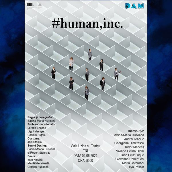 A doua seară, tânăra coregrafă Sabina Hultoană, și ea balerină la Opera Națională din Iași, a prezentat spectacolul #human.inc, o idee care s-a bazat pe o temă actuală: sindromul burnout. Munca neîncetată, rutina, cărora le cădem victime cei mai mulți dintre noi, nu ne lasă să vedem bucuriile, ne izolează de cei apropiați. Timpul trece cu repeziciune, iar acest nou răspândit stil viață ne depersonalizează și ne desensibilizează. Expresivitatea interpretării dansatorilor aleși de Sabina Hultoană a creat o impresie puternică asupra publicului: