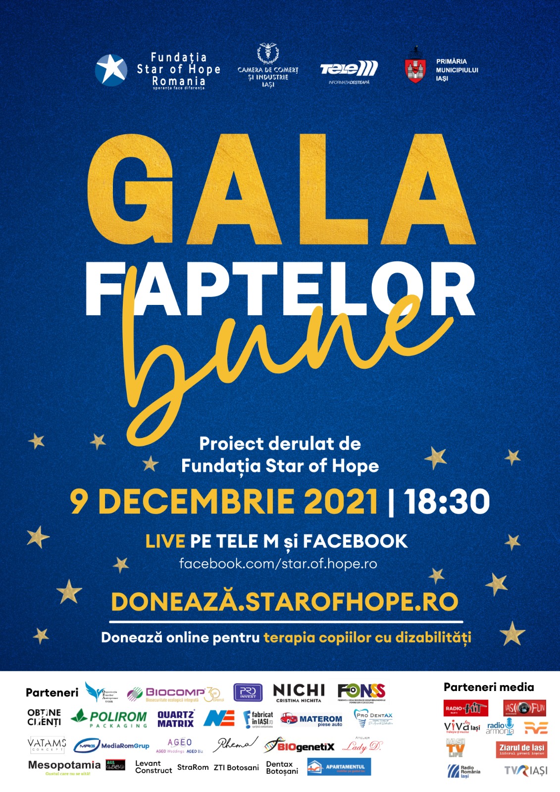 Fundația Star of Hope Romania în parteneriat cu Primăria Municipiului Iași și Camera de Comerț și Industrie Iași, organizează Gala Star of Hope 2021 – ediția Faptelor Bune, un eveniment online, găzduit de partenerul media TELEM. Devenită deja tradiție, Gala Star of Hope, este dedicată copiilor cu dizabilități din centrele Fundației Star of Hope Romania. Scopul evenimentului este de a promova valoarea și drepturile