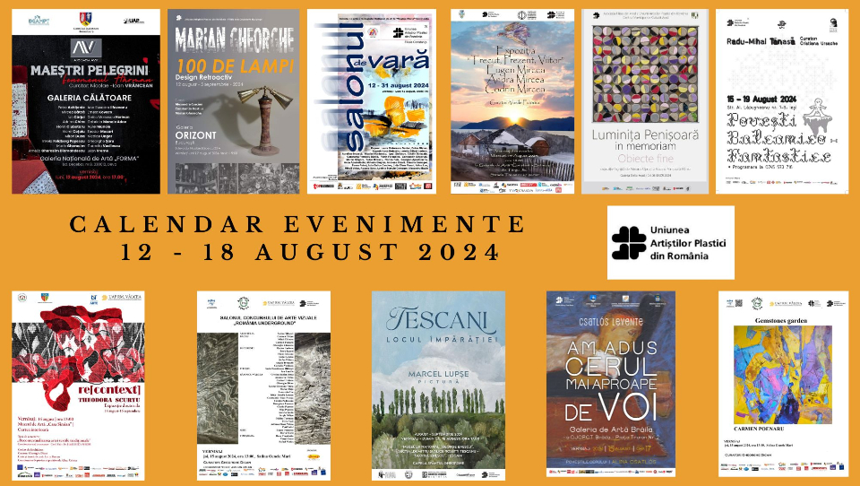 Uniunea Artiștilor Plastici din România face câteva recomandări ale evenimentelor vizuale care vor debuta în perioada 12 – 18 august 2024: