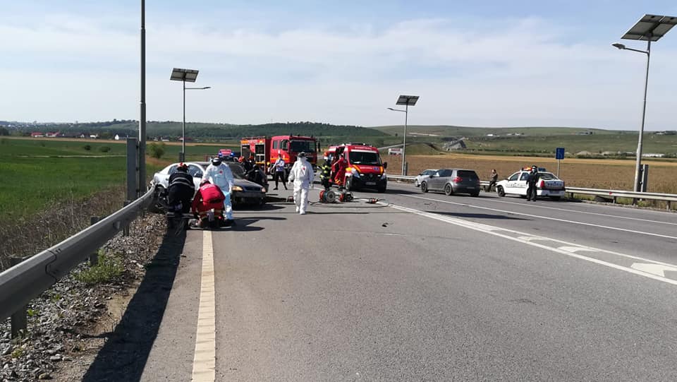 La faţa locului au intervenit pompierii militari cu o autospecială pentru descarcerare şi două ambulanţe SMURD.