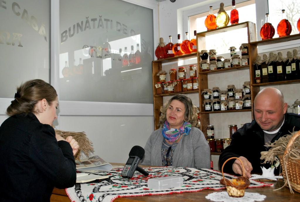 Daniel Socea: Nu, nu. M-am întors în ţară şi m-am apucat de transport. Am lucrat vro 5 ani şi banii toţi pe care i-am câştigat, i-am reinvestit. Nici transportul nu ne plăcea pentru că stăteam foarte mult timp departe de familie. După aia am făcut magazine, baruri, microferme, şi alea ……. Când m-am lăsat de tot de transport, am deschis un atelier de tâmplărie, care îl avem şi acum. Pentru că asta făcusem şi acolo cât am muncit. Când am făcut destui bani, am făcut afacerea asta care e pe sufletul nostru, pentru că noua întotdeauna ne-a plăcut să gătim, să mâncăm sănătos. Ceea ce ne place nouă şi ce am văzut noi afară, firme mici care sunt lăsate din generaţie în generaţie şi lucrul acesta vrem să facem şi noi acum cu bunătăţile de casă.