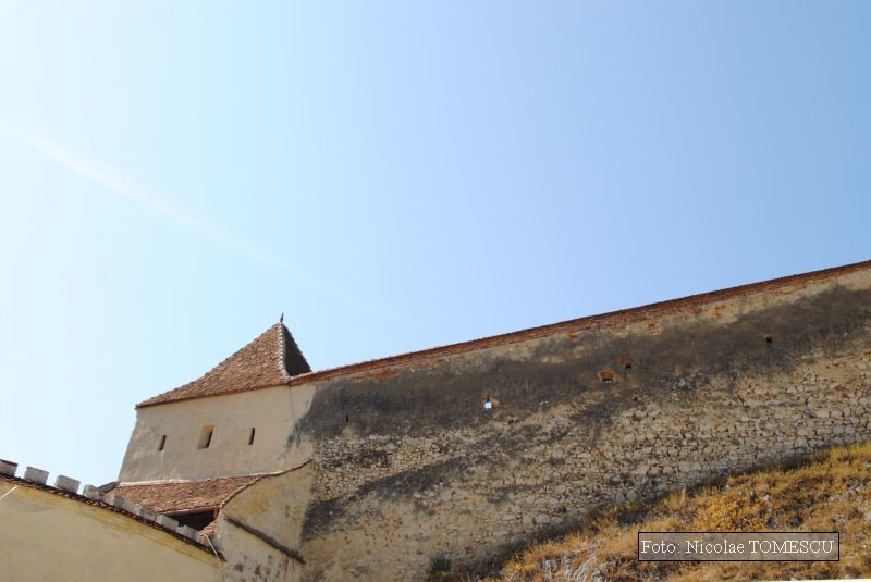 Aleea După ziduri” conduce de-a lungul unei laturi fortificate a Cetății Brașovului  și spre Romuri, o zonă care adăpostește două turnuri celebre. Turnul Negru (de fapt, are culoare gri) este un turn de dimensiuni reduse, ridicat pe o mică coastă abruptă deasupra cetății și datează din secolul al XV-lea. Numele i se trage de la la un trăsnet care l-a lovit și l-a înnegrit. Tot aici se ițesc vechile clădiri din spatele zidurilor, a căror formă lasă impresia unor mici cetăți bine închise. Se poate observa un spațiu între zidul exterior și primele case, spațiu delimitat de alte ziduri/de niște turnuri mai mici; cândva, erau amenajate Țarcul Măcelarilor și Țarcul Curelarilor (în spatele zidurilor, își desfășura activitatea câte o breaslă). În dreapta, am observat incinta Bastionului Fierarilor, transformat la începutul secolului XX în Arhivele Statului. În spatele turnului, două găuri săpate în stâncă, reprezentând vechile căi de acces către cetate… Continuând de-a lungul aleilor, se ajunge la Turnul Alb (își datorează numele vopselei albe cu care a fost zugrăvit în mod repetat). Terasa mare oferă și ea o panoramă spectaculoasă a orașului, mai ales că terenul pe care este situat turnul este foarte accidentat; de aici se coboară pe niște scări din piatră destul de abrupte până la Bastionul Graft (unește zidul cetății cu zidurile de stâncă ale versantului), o construcție ridicată deasupra drumului și deasupra apei care se scurge prin canalul amenajat de-a lungul laturii cetății. Coborând scările, se poate trece pe sub o arcadă, pe partea opusă; drumul pe Aleea „După ziduri” păstrează, pe stânga, canalul și pădurea…