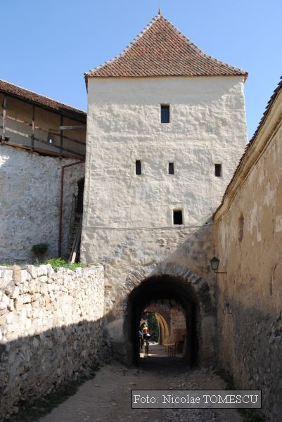 Aleea După ziduri” conduce de-a lungul unei laturi fortificate a Cetății Brașovului  și spre Romuri, o zonă care adăpostește două turnuri celebre. Turnul Negru (de fapt, are culoare gri) este un turn de dimensiuni reduse, ridicat pe o mică coastă abruptă deasupra cetății și datează din secolul al XV-lea. Numele i se trage de la la un trăsnet care l-a lovit și l-a înnegrit. Tot aici se ițesc vechile clădiri din spatele zidurilor, a căror formă lasă impresia unor mici cetăți bine închise. Se poate observa un spațiu între zidul exterior și primele case, spațiu delimitat de alte ziduri/de niște turnuri mai mici; cândva, erau amenajate Țarcul Măcelarilor și Țarcul Curelarilor (în spatele zidurilor, își desfășura activitatea câte o breaslă). În dreapta, am observat incinta Bastionului Fierarilor, transformat la începutul secolului XX în Arhivele Statului. În spatele turnului, două găuri săpate în stâncă, reprezentând vechile căi de acces către cetate… Continuând de-a lungul aleilor, se ajunge la Turnul Alb (își datorează numele vopselei albe cu care a fost zugrăvit în mod repetat). Terasa mare oferă și ea o panoramă spectaculoasă a orașului, mai ales că terenul pe care este situat turnul este foarte accidentat; de aici se coboară pe niște scări din piatră destul de abrupte până la Bastionul Graft (unește zidul cetății cu zidurile de stâncă ale versantului), o construcție ridicată deasupra drumului și deasupra apei care se scurge prin canalul amenajat de-a lungul laturii cetății. Coborând scările, se poate trece pe sub o arcadă, pe partea opusă; drumul pe Aleea „După ziduri” păstrează, pe stânga, canalul și pădurea…