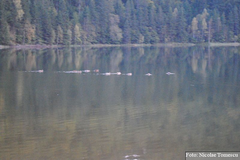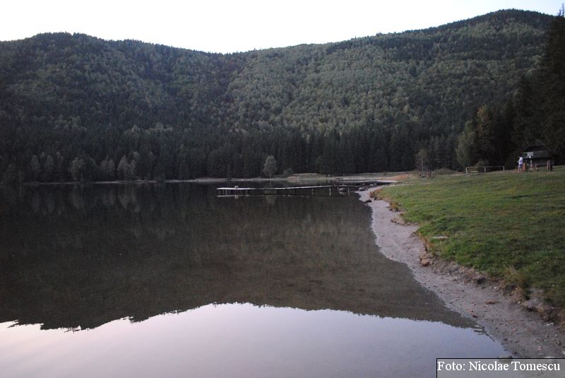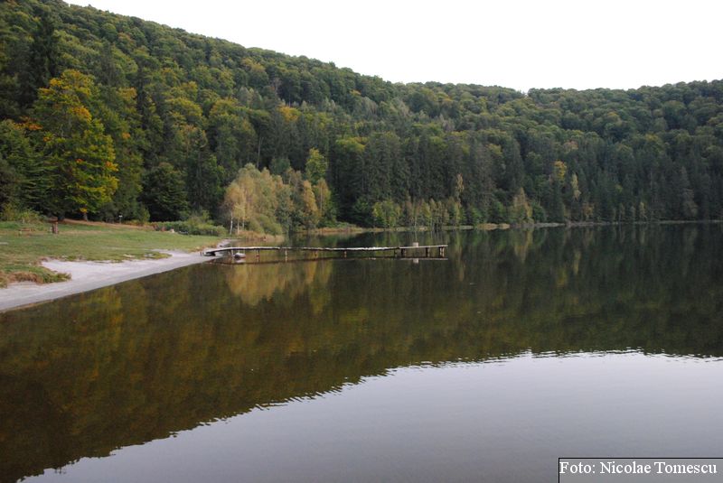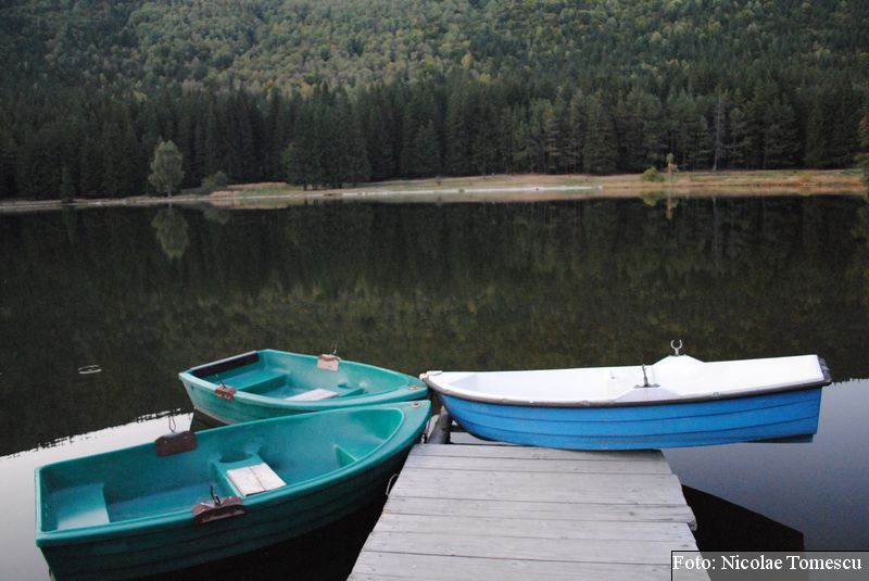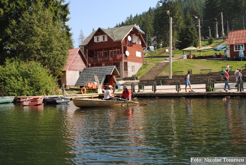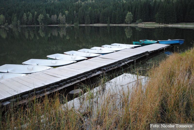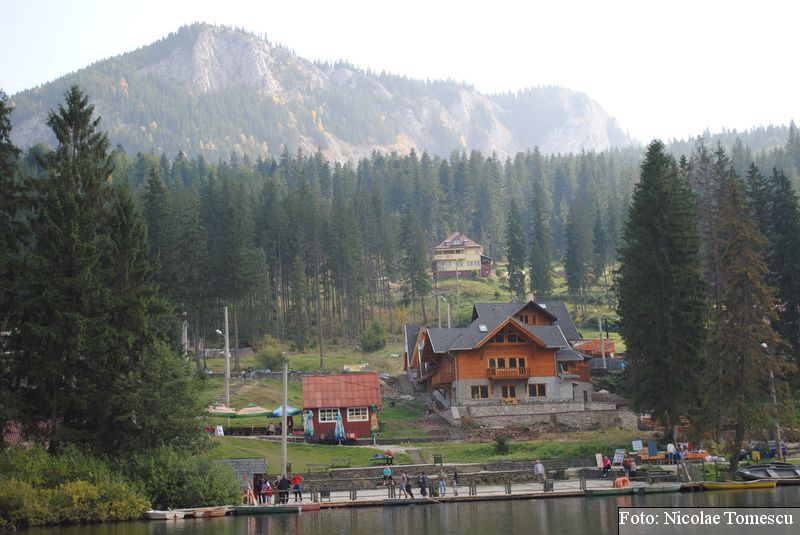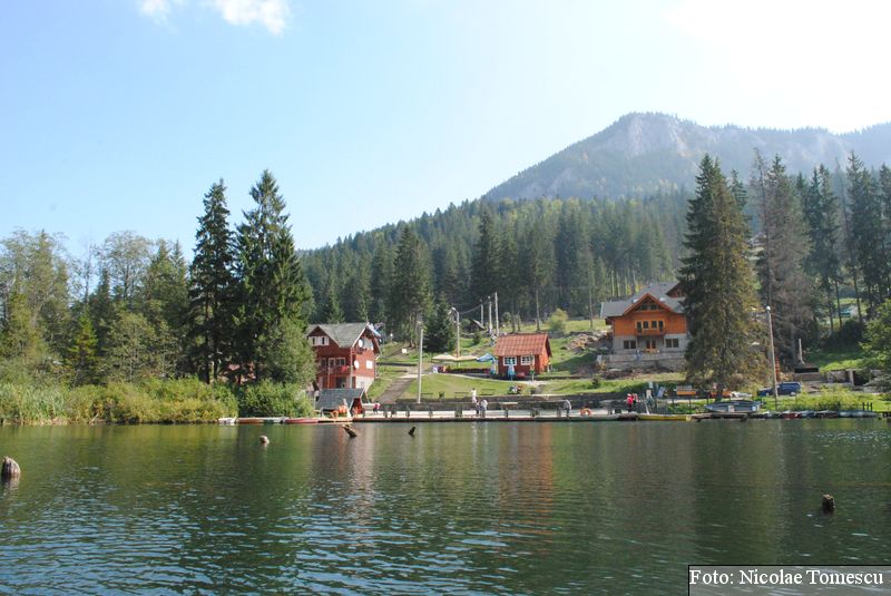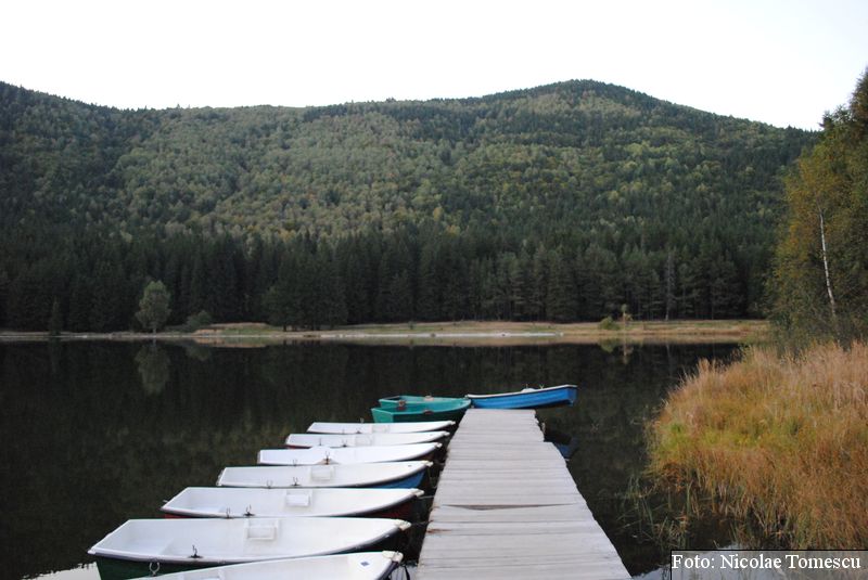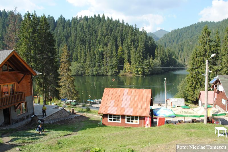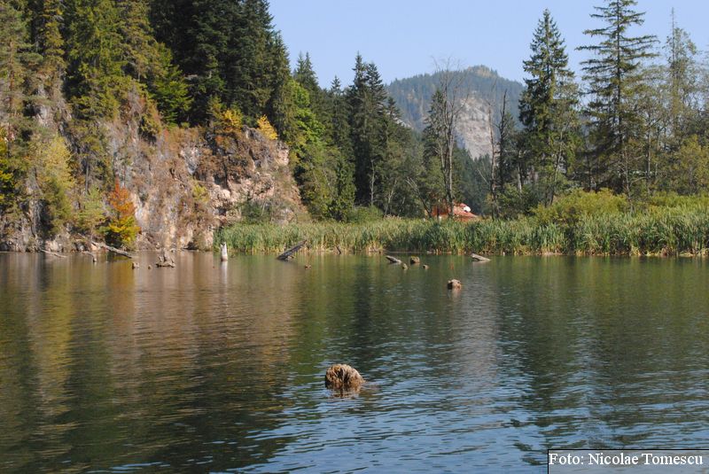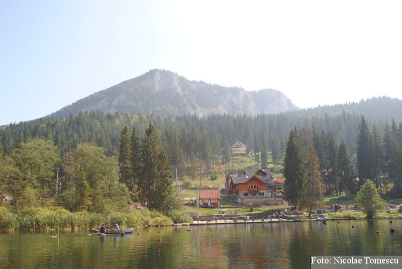 Lacul Roșu, cel mai mare lac natural montan din România, se hrănește cu traiectoria Pârăului Roșu (traversează straturi de culoarea oxizilor și hidroxizilor din fier). L-am privit ca pe un miracol, nu ca pe ceva întunecat și amenințător, iar el a renunțat la primejdia cioturilor ce ies din apă. Am pătruns, cu barca, în liniștea cârdurilor de rațe care trec nestingherite, dar, mai ales, am căutat semnele formării relativ recente, într-o zi de iulie a anului 1837; atunci, după furtuni și ploi torențiale, s-a desprins o fărâmă din Muntele Ucigașu și a împiedicat trei cursuri de apă. Reflectarea purpurie a Suhardului Mic, prezența aluviunilor roșiatice aduse, îndeosebi, de pârâul Roșu, calcarele roșcate din jurul apei i-au inspirat pe ciobani să-i dea numele de Lacul Roșu. Prin 1857, trei oameni din Gheorgheni, strânși oarecum de treburi, dar mai ales de plăcere, în sticla frumuseții muntelui și a lacului, au început să povestească, tuturor, despre locul fericirii supreme, fără să spună, nimănui, dacă ei cred că în Lacul Roșu vor ajunge, după moarte, sufletele celor evlavioși. Din acea clipă, atrași de lacul-eden, de bogăția florei și faunei (râsul, capra neagră, lupul, cerbul, mistrețul), turiștii cu sau fără de Dumnezeu străbat potecile, pădurile de conifere în amestec cu alunul sau salcia de munte (pe versanții din preajmă cresc bradul alb, paltinul și plopul de munte), se gândesc la confort, la plesniturile lemnului și cărnii încinse de grătar…