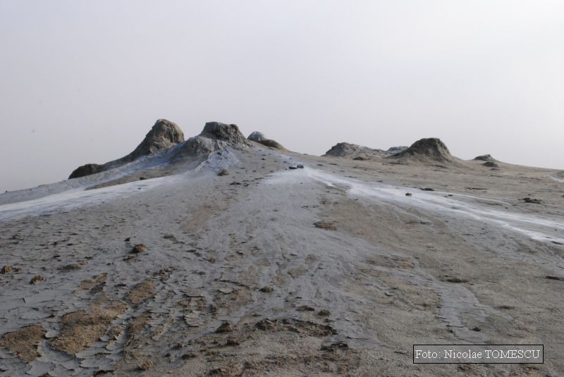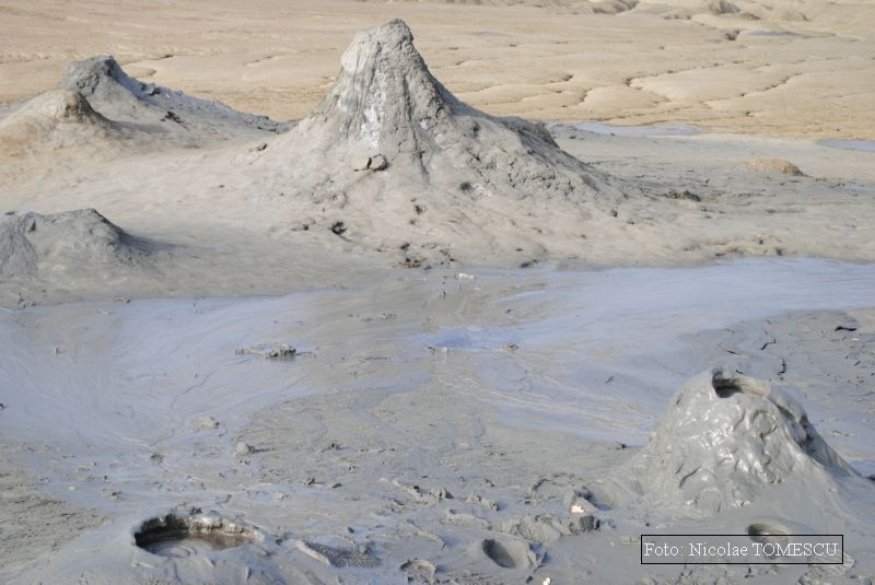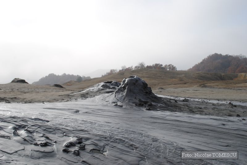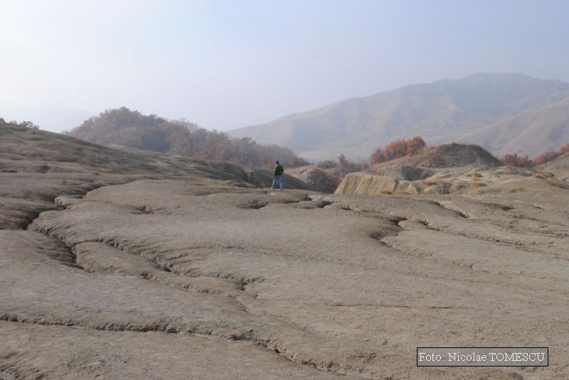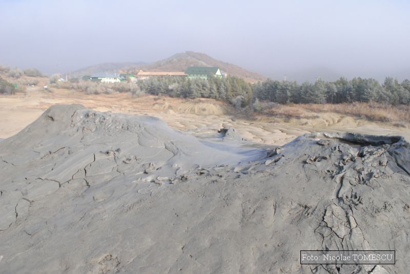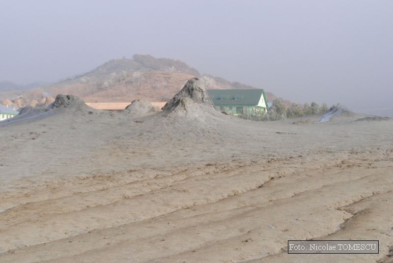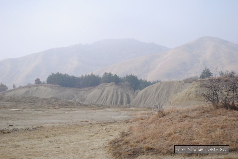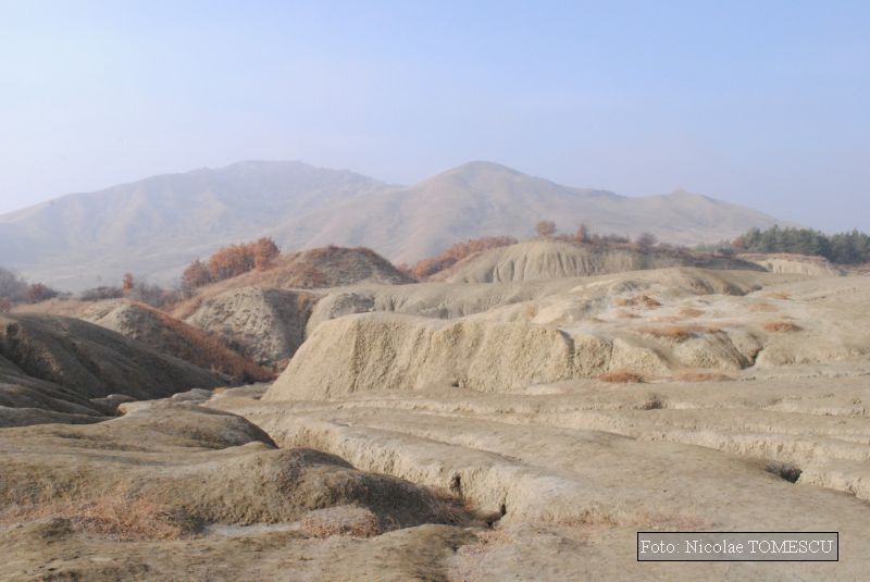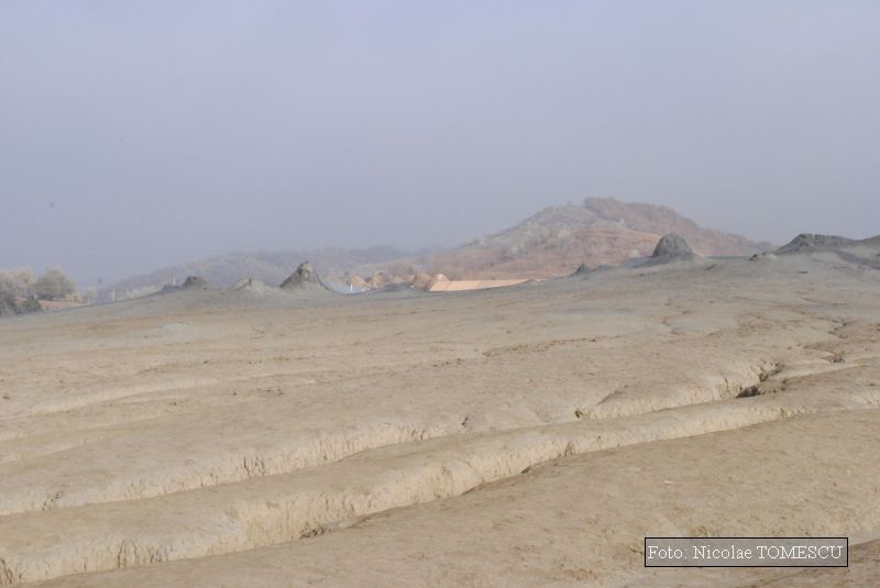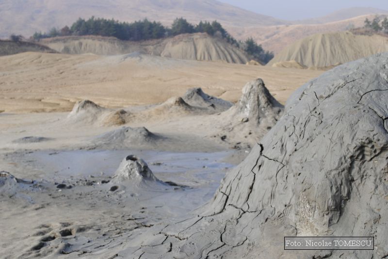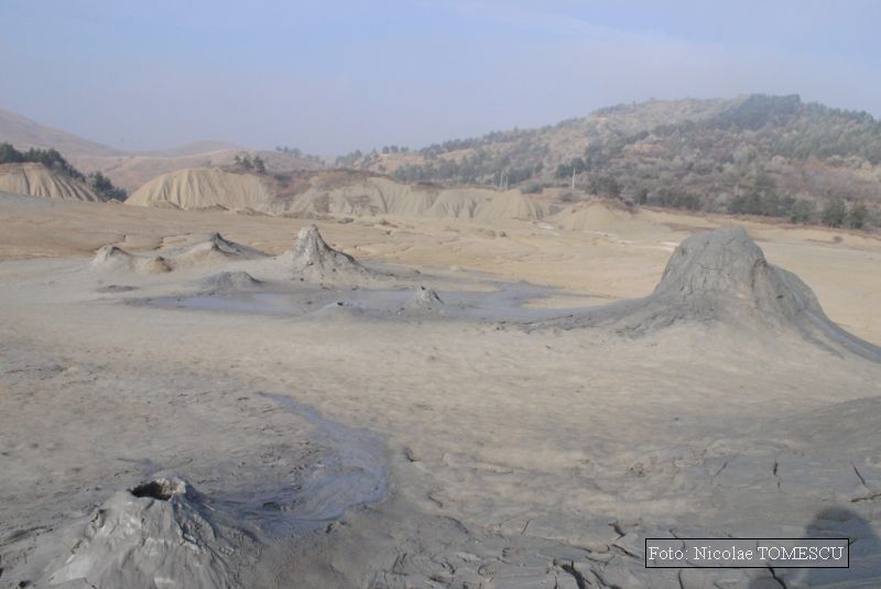 În județul Buzău însă, expresia atinge un adevărat delir care îți frământă metafizica și, mai ales, autoturismul proprietate personală. Ce-i drept, am forțat destinul unui traseu în direcția Vulcanilor Noroioși. Relativ aproape de capitală, de Ploiești, Brașov, sudul Moldovei, Dobrogea, estul Bărăganului, cu acces prin DN 10 (Buzău – Brașov), apoi prin DJ 102 F și DC 108, în zona Pâclele Mici și Pâclele Mari, pe raza comunelor Scorțoasa și Berca, două platouri unice, cu aspect selenar, se întind pe câteva zeci de hectare, sedimentează conuri gri-pământii, mai ascuțite sau mai plate, din care tâșnește sau se prelinge noroiul rece; de fapt, gazul metan din adâncuri își croiește drum către suprafață, târește după el noroiul și evadează din straturile pe care le străbate.