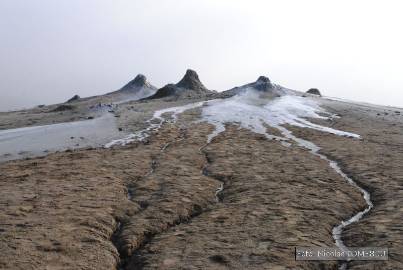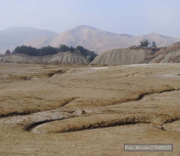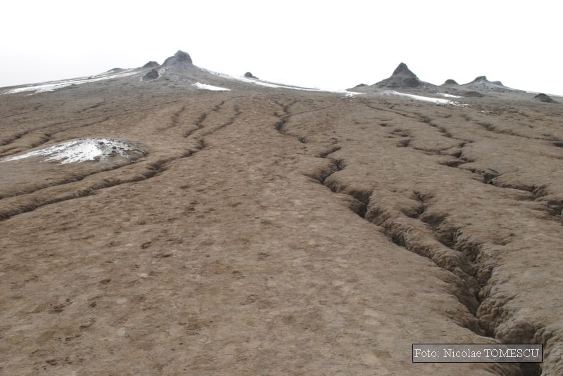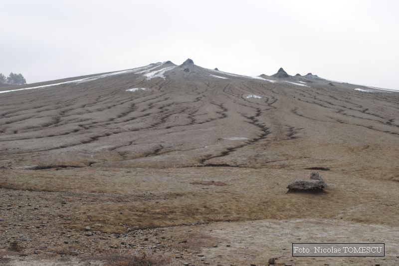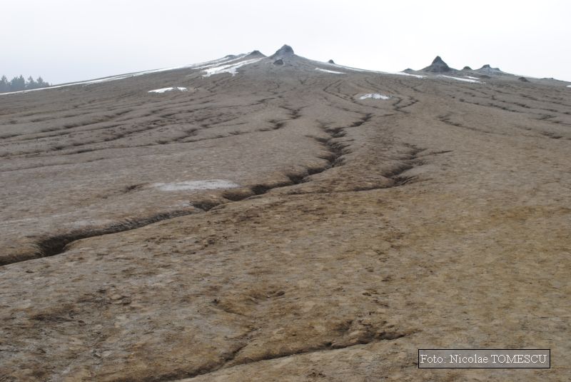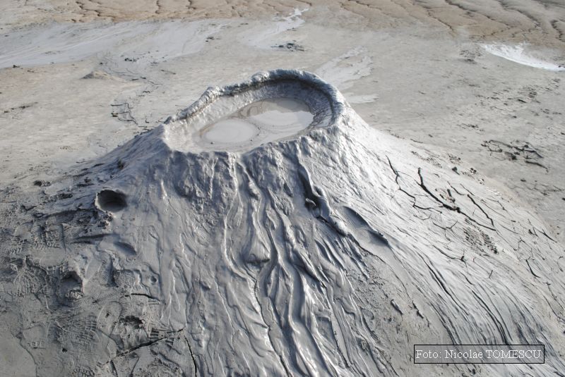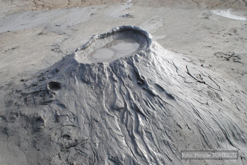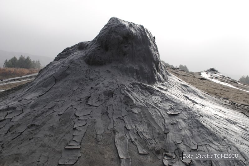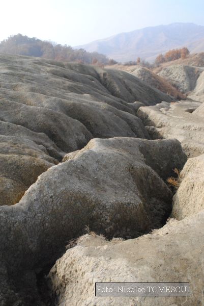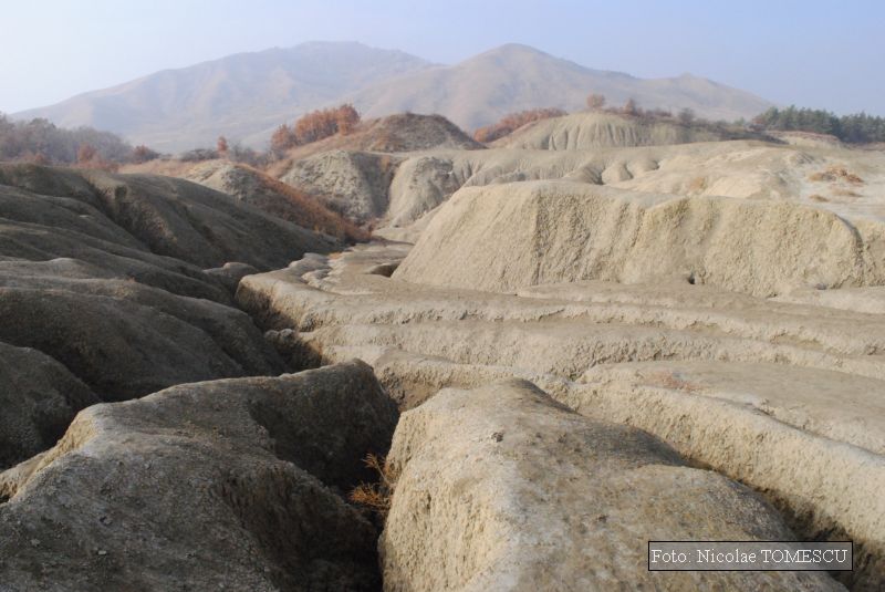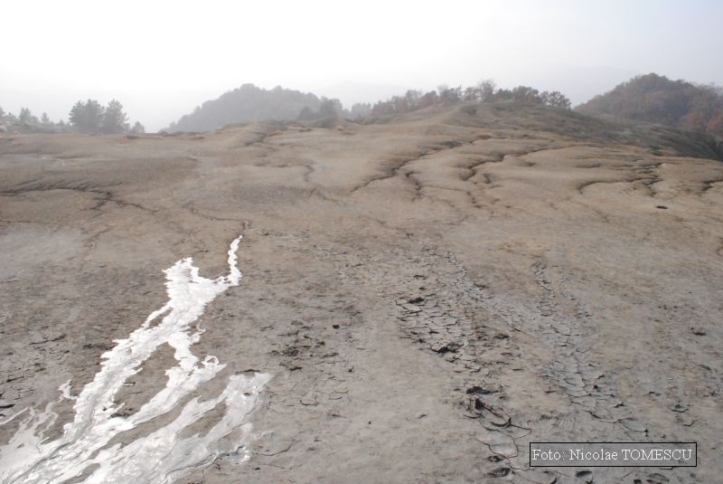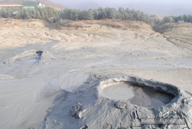 În județul Buzău însă, expresia atinge un adevărat delir care îți frământă metafizica și, mai ales, autoturismul proprietate personală. Ce-i drept, am forțat destinul unui traseu în direcția Vulcanilor Noroioși. Relativ aproape de capitală, de Ploiești, Brașov, sudul Moldovei, Dobrogea, estul Bărăganului, cu acces prin DN 10 (Buzău – Brașov), apoi prin DJ 102 F și DC 108, în zona Pâclele Mici și Pâclele Mari, pe raza comunelor Scorțoasa și Berca, două platouri unice, cu aspect selenar, se întind pe câteva zeci de hectare, sedimentează conuri gri-pământii, mai ascuțite sau mai plate, din care tâșnește sau se prelinge noroiul rece; de fapt, gazul metan din adâncuri își croiește drum către suprafață, târește după el noroiul și evadează din straturile pe care le străbate.