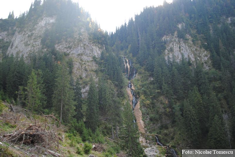 Telescaunul ne-a rătăcit într-o călătorie de aproape 20 de minute. Am fi vrut să nu ajungem nicăieri, la nimic, întrucât ni se părea că avem deja totul. Sus, drumul se bifurcă: la dreapta, se coboară către Cascada Cailor, cea mai mare din România, totodată, una dintre cele mai spectaculoase. Cascada Cailor are o cădere de apă de peste 90 de metri, în trei trepte; debitul variază funcție de ploi și de topirea zăpezii de pe versantul Rezervației Piatra Rea. La cota 1.300 nu te cuprinde aroganța spirituală a mitului, ci, mai curând, te lași învăluit de întâmplările locului, așa cum le-au înțeles oamenii vremii; dacă există, povestirea fabuloasă nu privește originea universului și a fenomenelor naturii, zeii și eroii legendari, ci asocierea fatidică dintre un mamifer omnivor, de talie mare, și un animal domestic ierbivor, inclusiv mai multe puncte marcate de incident, precum Muntele Cailor, Izvorul Cailor, Podul Cailor. Localnicii cred că pe pajiștile Muntelui Piatra Rea pășteau hergheliile strămoșilor. La răstimpuri, ursul înfometat gonea prada speriată, direct către prăpastie, iar caii se prăvăleau în hăul întunecat. O noapte cu furtună năpraznică, în care ploaia grea și fulgerele s-au trezit pentru a fi de folos ursului, dădea tonul sărbătorii sângerii: întreaga avere a satului a pierit, într-un delir pe care nu și-l închipuise nici fiara dezlănțuită…