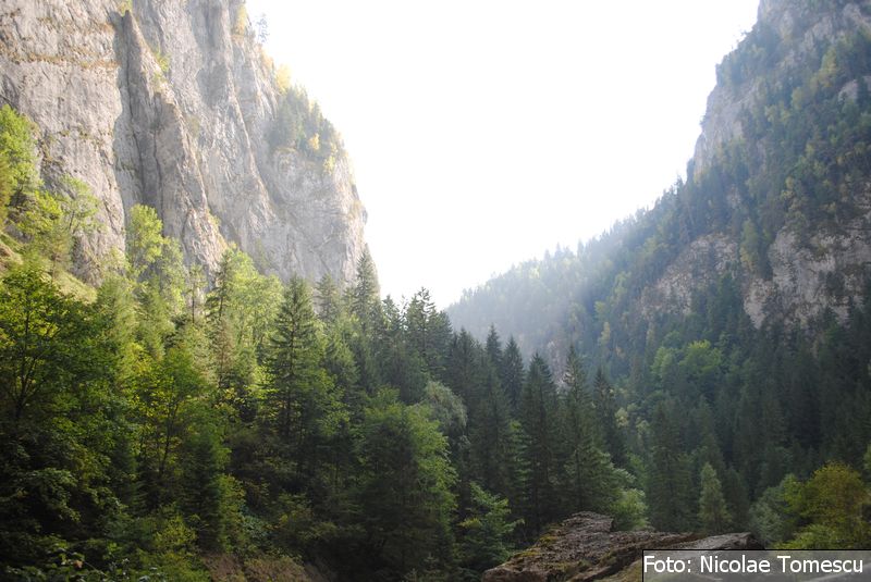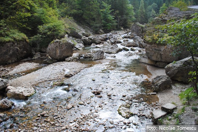 Pe valea râului Bicaz, în aval de Lacu Roșu, încep Cheile Bicazului (lungi de 8 km, de la Lacu Roșu până la Bicazul Ardelean), un fel de ascensor, cu zig-zag-uri amețitoare, care te plimbă între Transilvania și Moldova. Serpentinele din Chei nu nimeresc în mijlocul unor magazine cu produse meșteșugite în zonă, dar trec razant, lasă în urmă gesturile fixe ale obișnuinței. Pereții de calcar parcă au fost tăiați cu ferestrăul de apele repezi ale Bicazului; mai mult, ascund peșteri și avene. Ne îngăduim libertatea picăturilor de apă care desenează râurile, măreția stâncilor ne înfășoară ca și cum ar afirma rădăcinile unei lumi, iar îmbrățișările dintre om și munte țes împrejurări curate…
