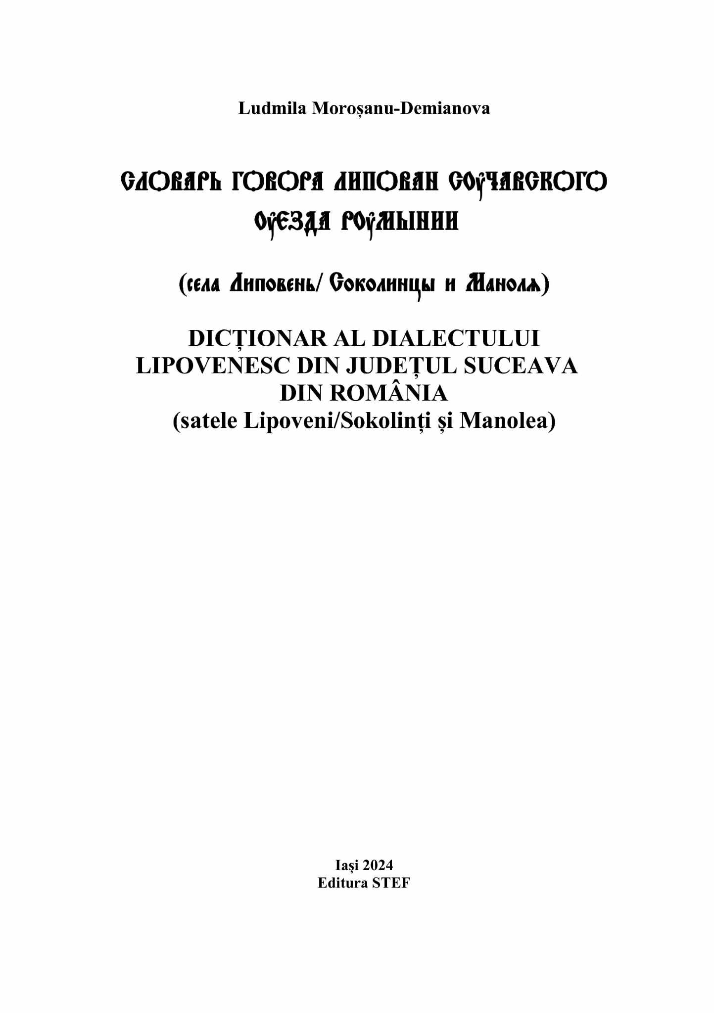 Astăzi, după cum bine știți, vorbim despre: Dicționar al dialectului lipovenesc din județul Suceava din România (satele Lipoveni/Sokolințî și Manolea), volum realizat de către doamna profesor Ludmila Moroșanu-Demianova, specialist în Lingvistică.
