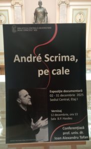 Stimați prieteni, la aniversarea a o sută de ani de la naşterea lui André Scrima (1 decembrie 1925 – 19 august 2000), Biblioteca Centrală Universitară „Mihai Eminescu” Iaşi vă invită să descoperiţi faţete ale operei şi personalităţii sale prin expoziţia documentară deschisă în sediul central, etaj I. Expoziția este deschisă până la 31 decembrie 2025.
