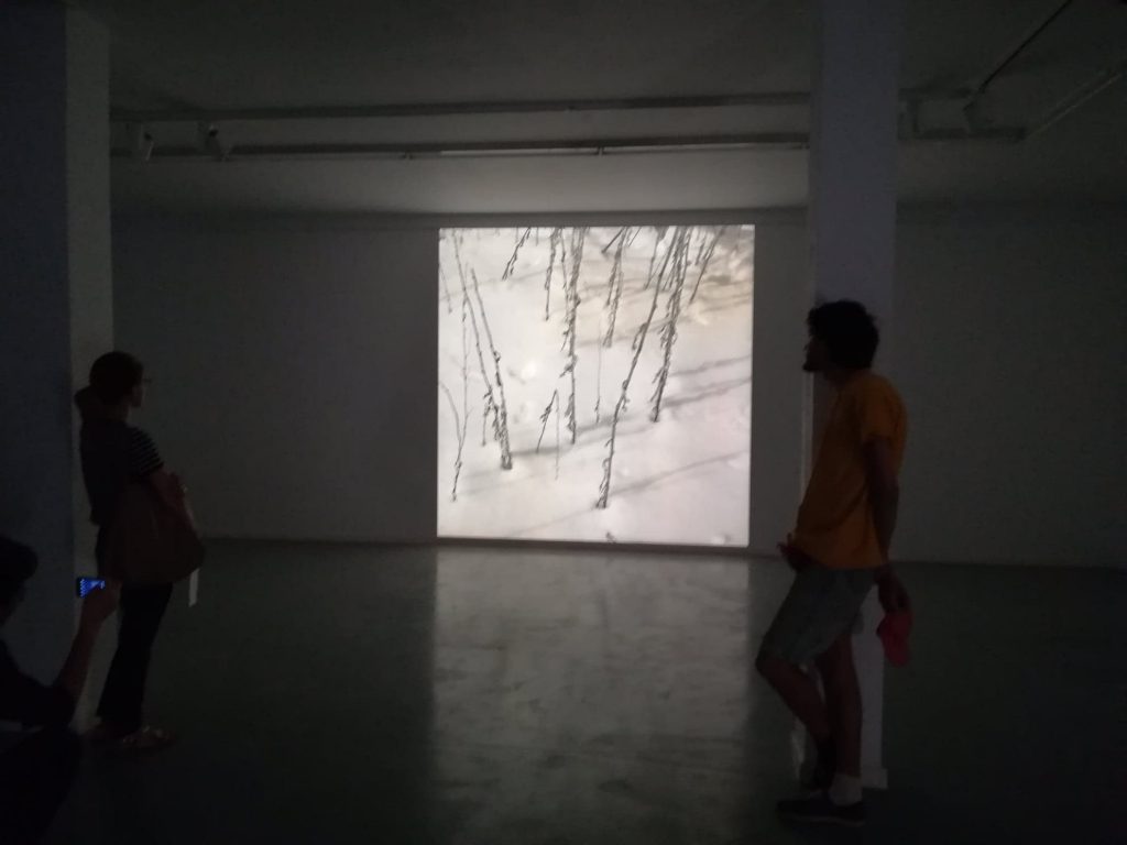 Matei Bejenaru: Este un stadiu al proiectelor mele artistice, care toate gravitează în jurul explorării mediului fotografic și a modului de comunicare cu ajutorul fotografiei, fie ea statică, fie ea în mișcare, să numim film. Proiectul ăsta de expoziție se numește REFLECTOR, vorbește despre un spațiu intim, despre raportul dintre intimitatea mea și lumea exterioară, pe care o reprezint în imagini fotografice, și constă în… expoziția de arte vizuale constă într-o serie de proiecții de diapozitive alb-negru de mari dimensiuni, un film pe peliculă 16 mm, cum se făceau acum câteva decenii, toate realizate de mine, în laboratorul meu, și care vorbesc o dată despre mediul fotografic, despre cunoașterea lumii înconjurătoare și cunoașterea de sine, și într-adevăr, cum spuneați dumneavoastră, eu mi-am dezvoltat niște tehnici de lucru, așa… tehnici sau metode, și una dintre metode este aceea că eu mă plimb în natură, natura consider că este, în continuare, o sursă de inspirație, depinde cum ne uităm la ea, sunt așa, un fel… ceea ce le numesc eu, așa… generic și oarecum metaforic, marșuri de gândire. Eu îm stabilesc niște deplasări prin natură, și acolo, documentez, fie cu ajutorul microfonului, fac prize de sunet, și sunetele astea le mixez, le rearanjez în tot felul de performance-uri sonore, cum cei care au fost prezenți acum, au putut să asculte, și în fotografii, fotografii care sunt niște fotografii martor, dar sper eu, să aibă și niște calități vizuale, și sigur, cred că sunt și niște imagini care sunt și emoționale, pentru că eu cred că sunt un om confesiv și emoțional în ceea ce fac.