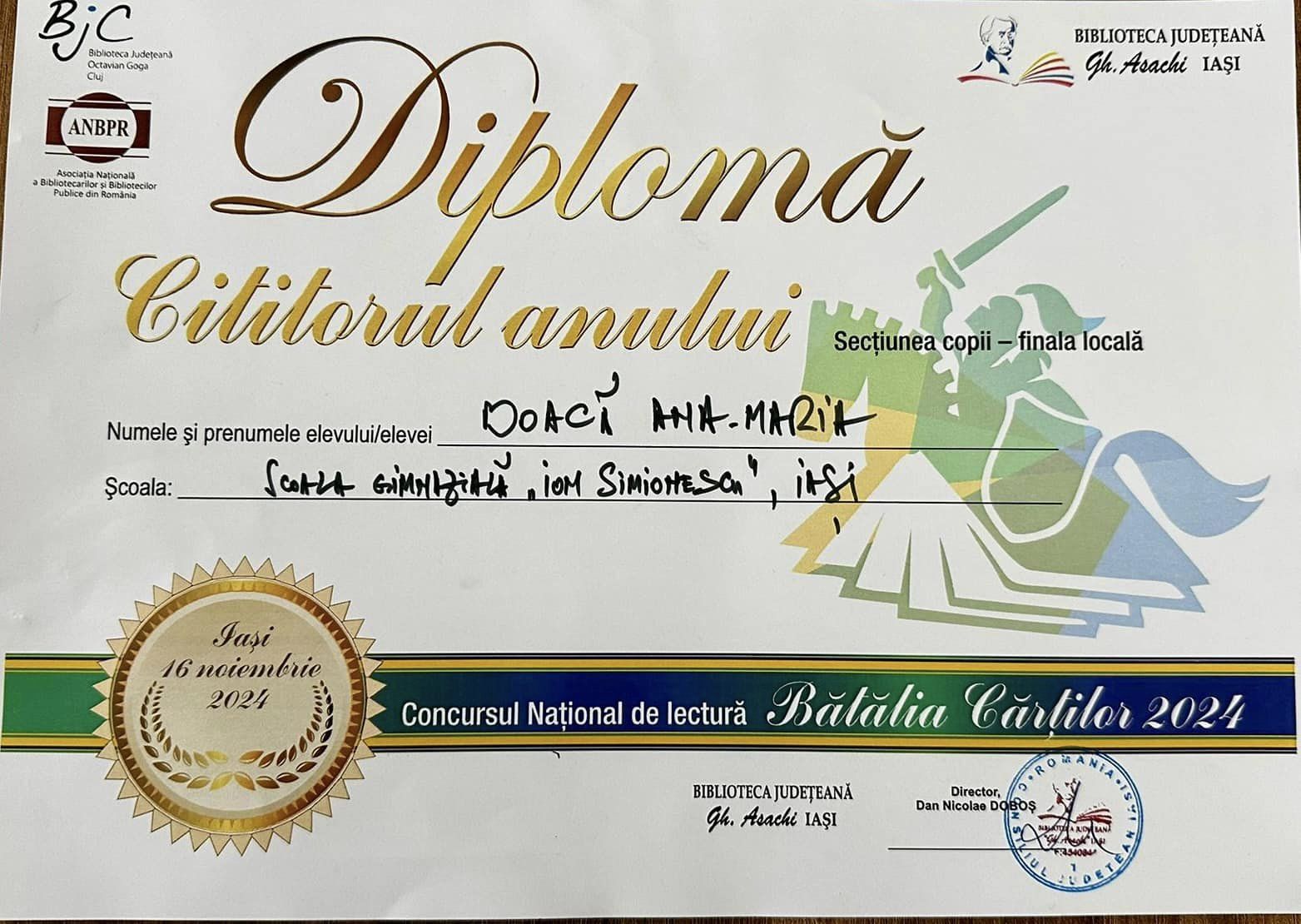 Premiul „Cititorul anului” la Secțiunea Adolescenți (14 – 18 ani) i-a revenit elevei Ioana-Alexandra Rotaru de la Liceul Teoretic de Informatică „Gr. Moisil” Iași.