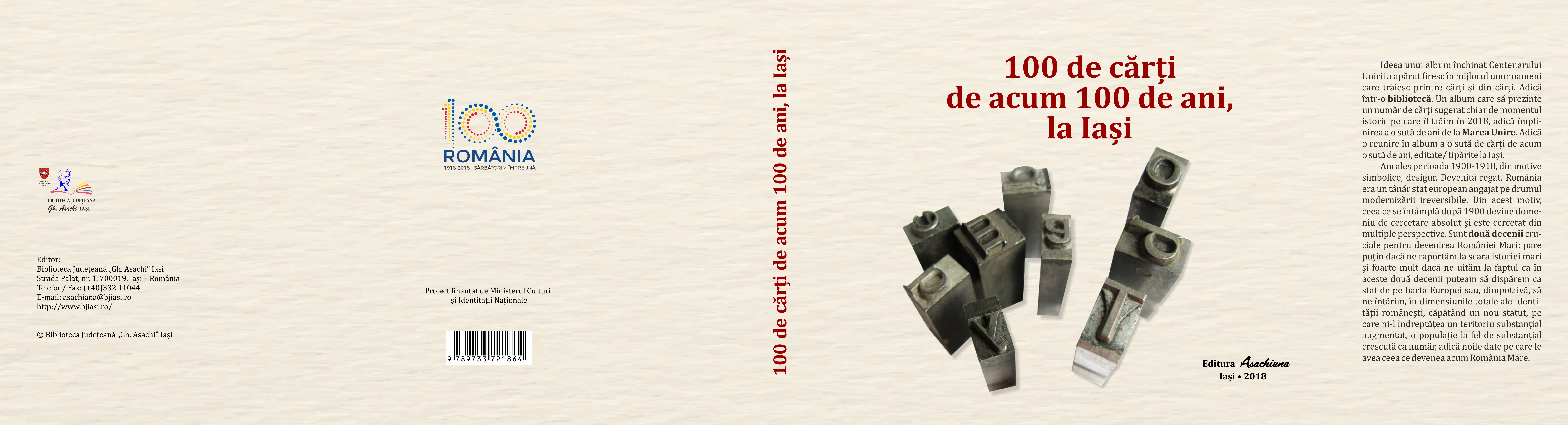 Este vorba despre prezentarea volumului – 100 de cărți de acum 100 de ani, la Iași – apărut la Editura Asachiana, precum și prezentarea unui colaj a 100 de coperți ale volumelor editate în perioada 1900 – 1918.