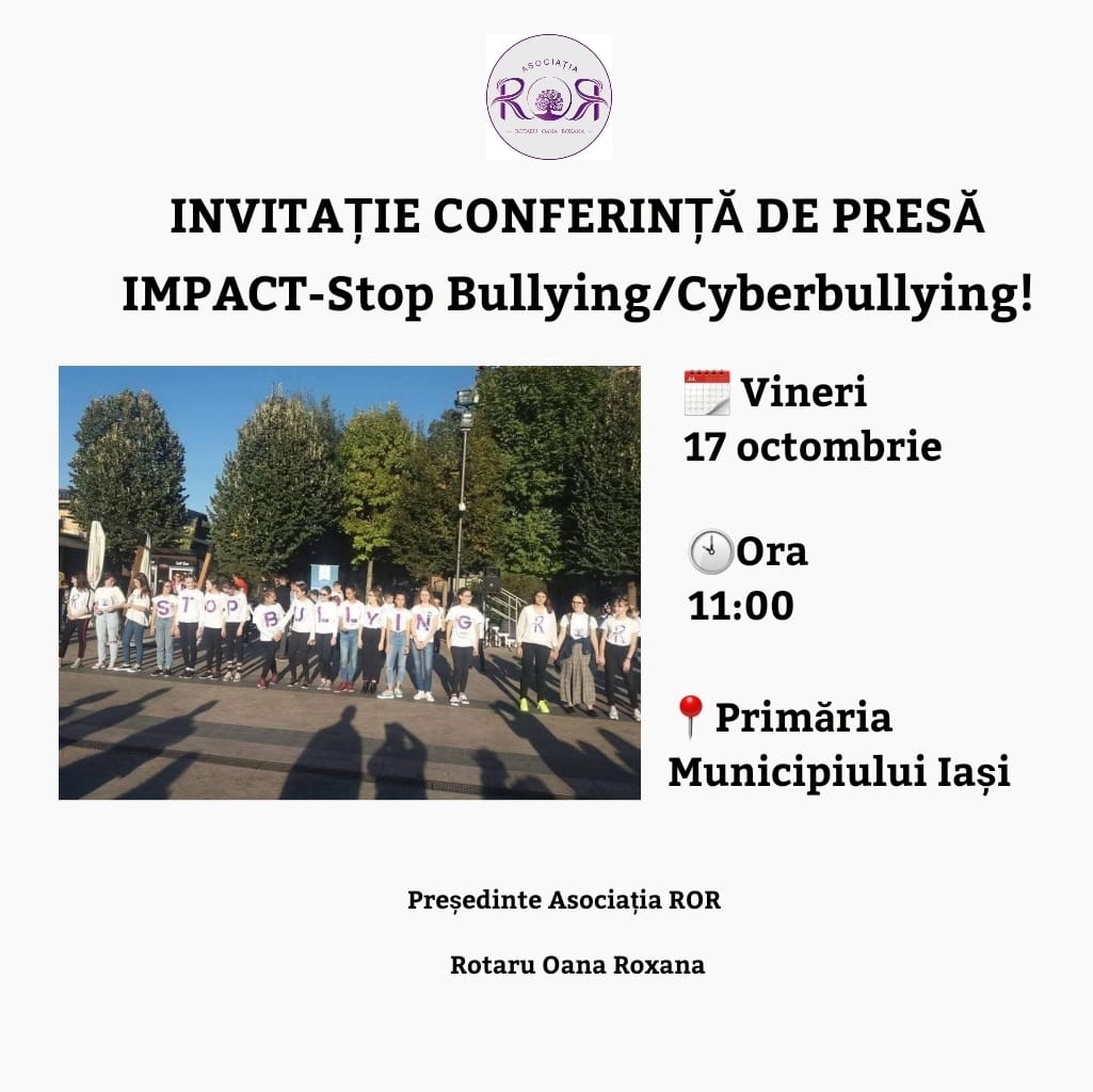 Evenimentul marchează prezentarea campaniei „IMPACT – Stop Bullying/Cyberbullying!”, derulată de Asociația ROR în municipiul și județul Iași încă din anul 2018. Conferința va aborda statistici relevante, consecințele fenomenului și soluțiile concrete propuse pentru prevenirea acestuia în comunitatea ieșeană.