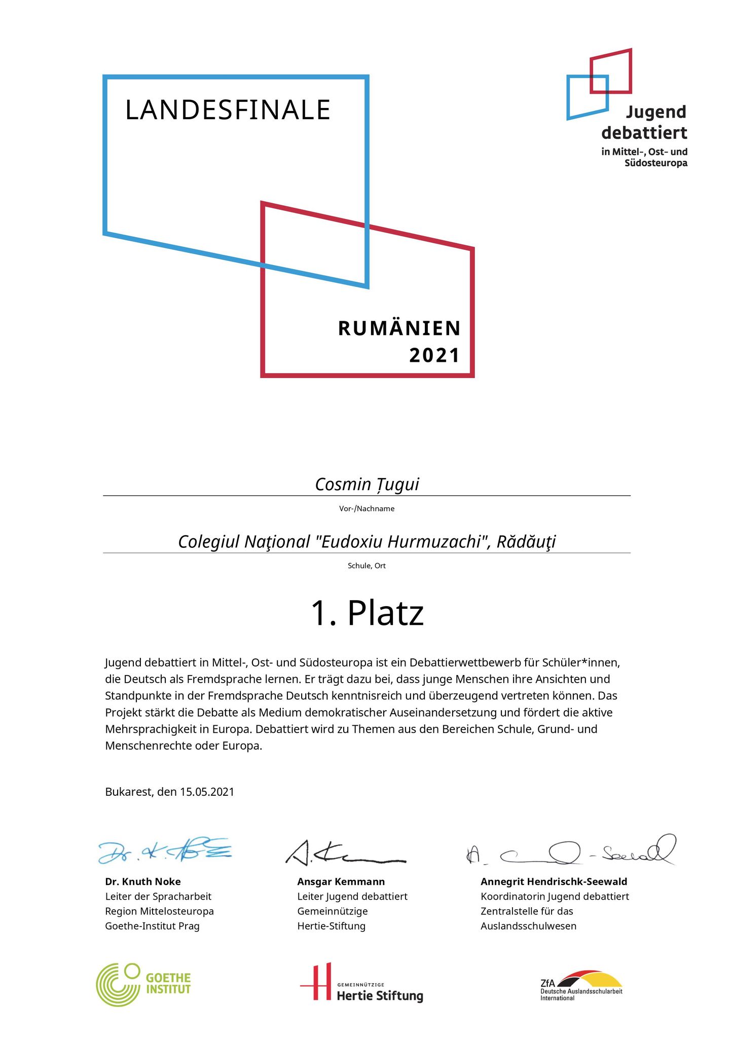 Cosmin Țugui, elev din Rădăuți, locul întâi la o competiție de dezbateri în limba germană. Emisiunea ”Weekend cu prieteni”, realizator – Horia Daraban (23.05.2021