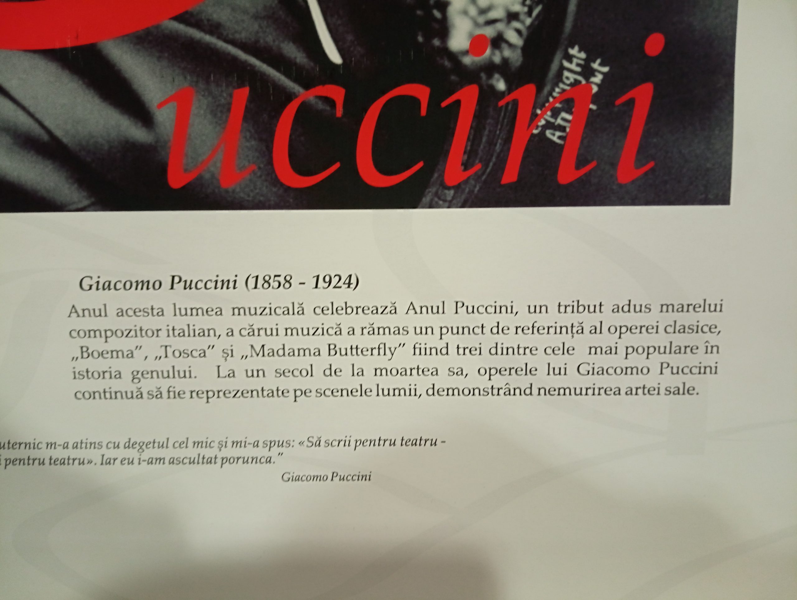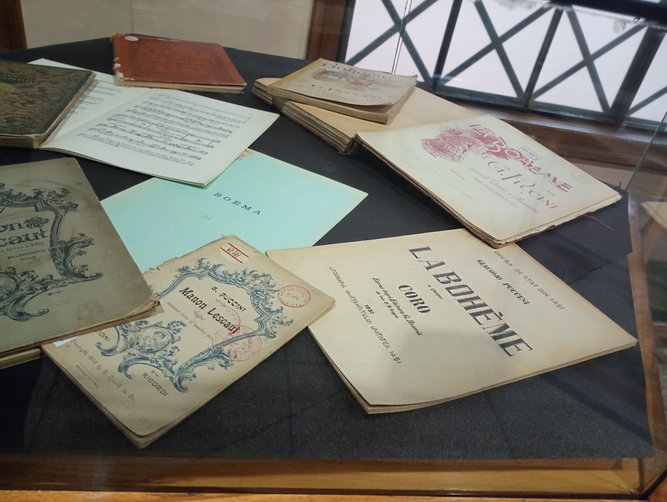 În cele ce urmează, oferim cuvântul doamnei Lăcrămioara Chihaia, șef al Departamentului Colecții Speciale, BCU Iași, cea care, pe scurt, ne prezintă din perspectivă biblioteconomică esența expoziției care constituie subiectul ediției de astăzi a emisiunii noastre; Lăcrămioara Chihaia ne amintește și de Giacomo Puccini de la a cărei plecare în „satul setelelor”, anul acesta, se împlinesc 100 de ani. Așadar, în acest context, la etajul al doilea al bibliotecii este amenajată o frumoasă expoziție.