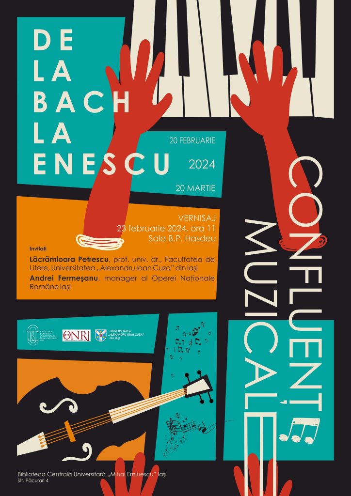 După cum bine știți, astăzi, prezentăm, pe calea undelor Radio Iași, secvențe de la vernisajul expoziției De la Bach la Enescu – confluențe muzicale, eveniment care s-a desfășurat, nu demult, la Iași, în sala „B.P. Hasdeu” din incinta Bibliotecii Centrale Universitare „Mihai Eminescu”. Expoziția a fost organizată de către reprezentanții Departamentului Colecții Speciale din cadrul Bibliotecii Centrale Universitare „Mihai Eminescu” în spațiul expozițional de la etajele I și al II-lea ale Palatului Fundației.