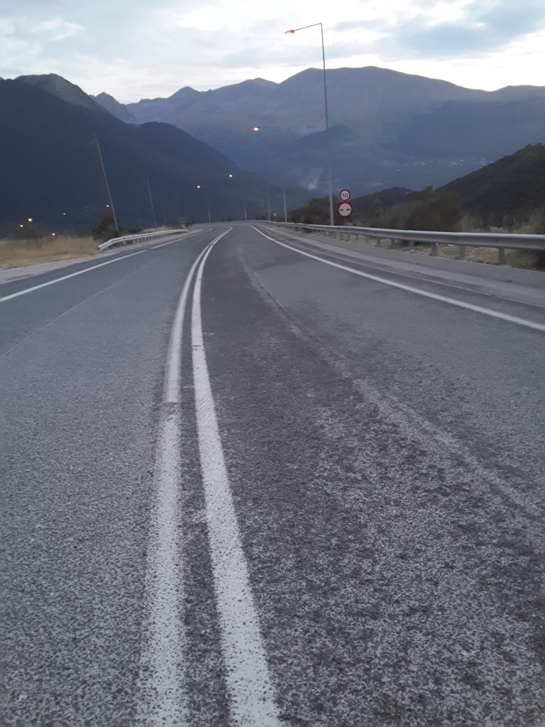Pe urmele vorbitorilor de limba română din Peninsula Balacanica, astăzi ne aflam la Koridalos, municipalitatea Kalabaka (lângă Meteora), județul Trikala – după cum ne explică o româncă, stabilită acolo de 28 ani… Așadar, aici, în Munții Pindului, vedem un steag românesc la șosea, în fața unui mic restaurant. Oprim și întâlnim localnicii vlahi, cu care discutăm despre zăpadă în Grecia… și despre satele vlăhești care se mai află în drumul nostru până la Aminciu sau Metsovo. Clienții români sunt bineveniți aici, pentru că soția patronului și în același timp bucătăreasa micului local, este originară din Galați! Paula, se numește ea. Iar pe proprietar, îl cheamă Angheli Dimitros.
