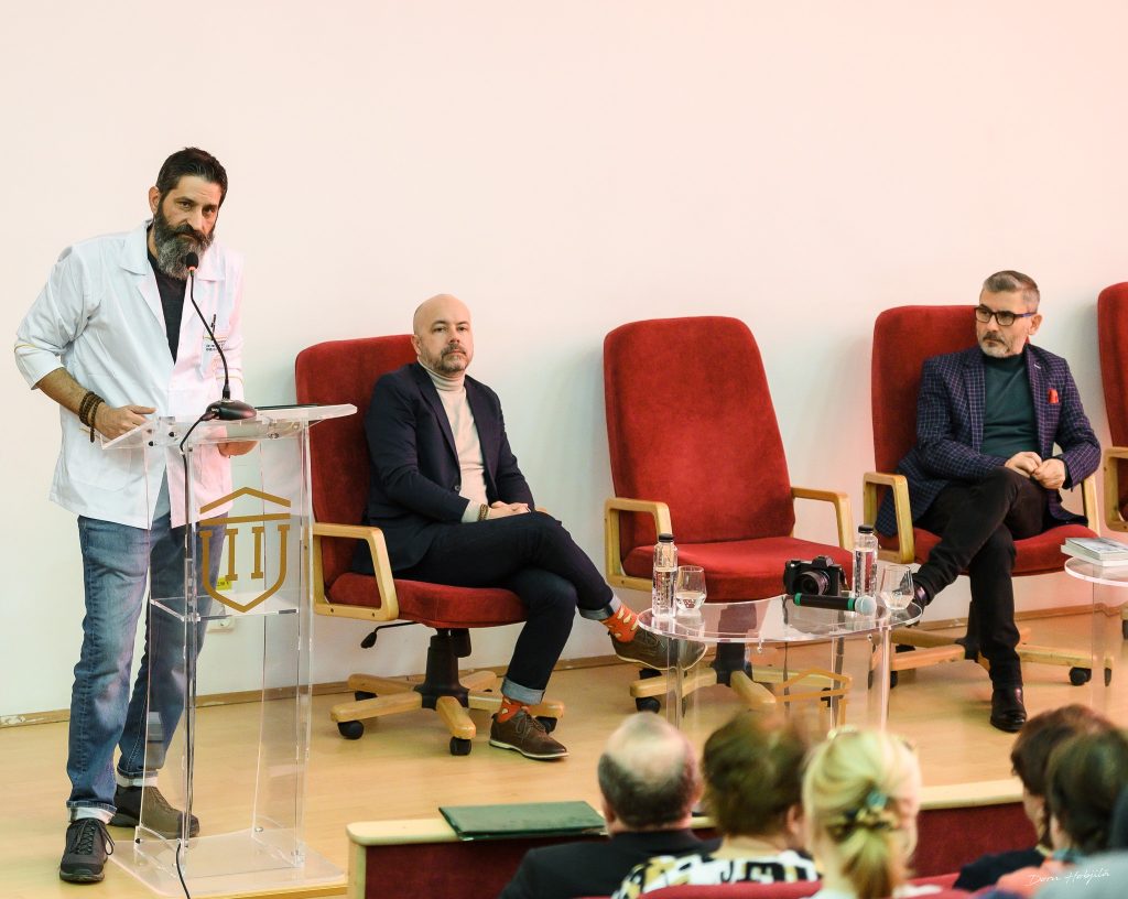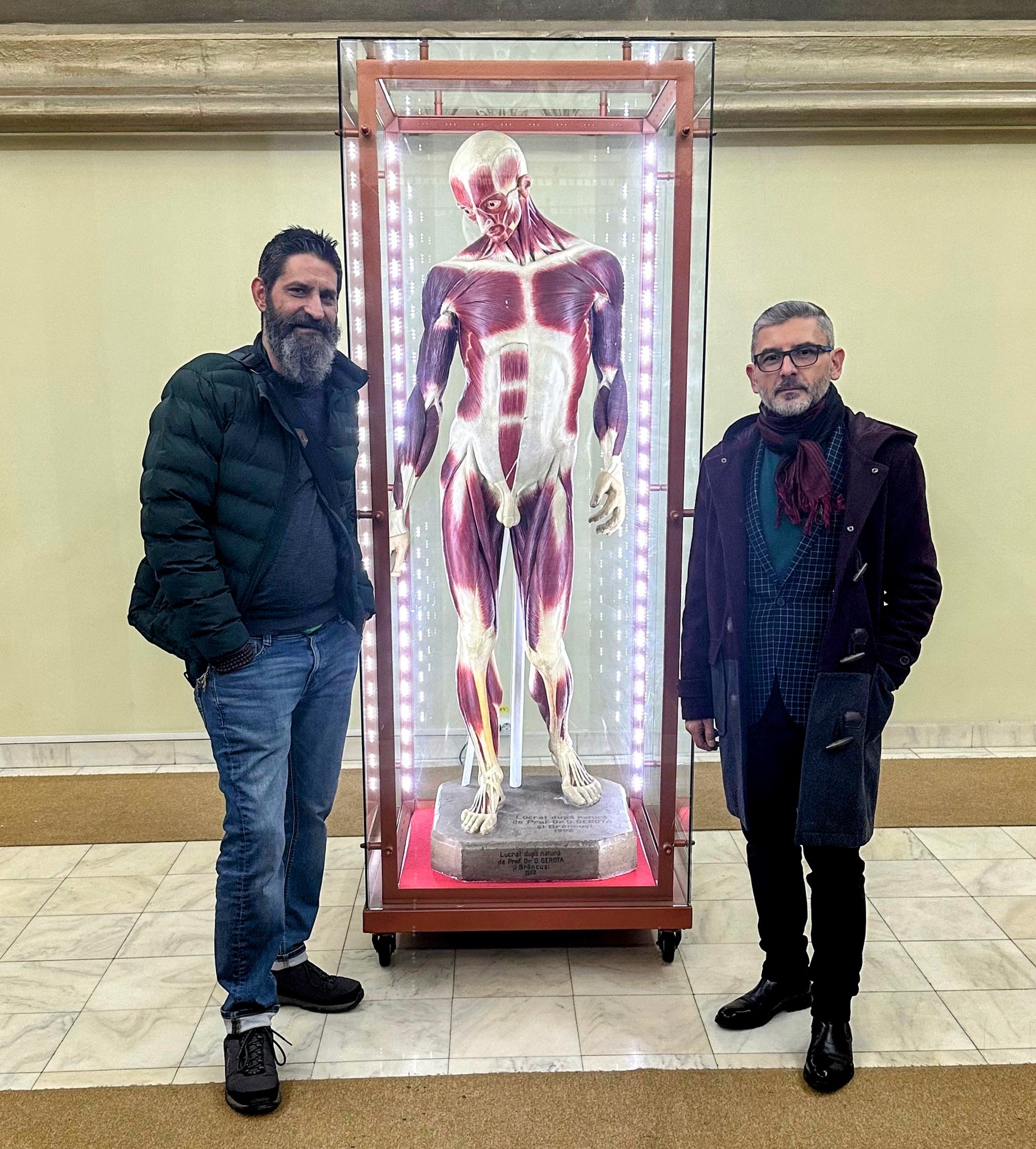 Amfitrionul evenimentului ne spune că sculptorul Constantin Brâncuși a realizat, între 1900 și 1902, sub supravegherea doctorului Dimitrie Gerota, cunoscutul „Ecorșeu“. O replică a acestuia se află expusă în Muzeul de Anatomie din cadrul Universității de Medicină și Farmacie „Grigore T. Popa” din Iași. Vizitatorii Muzeului pot citi dubla inscripție de pe suprafața plintei ecorșeului și de pe latura din față: „Lucrat după natură de prof. dr. D. Gerota și Brâncuș 1902“.