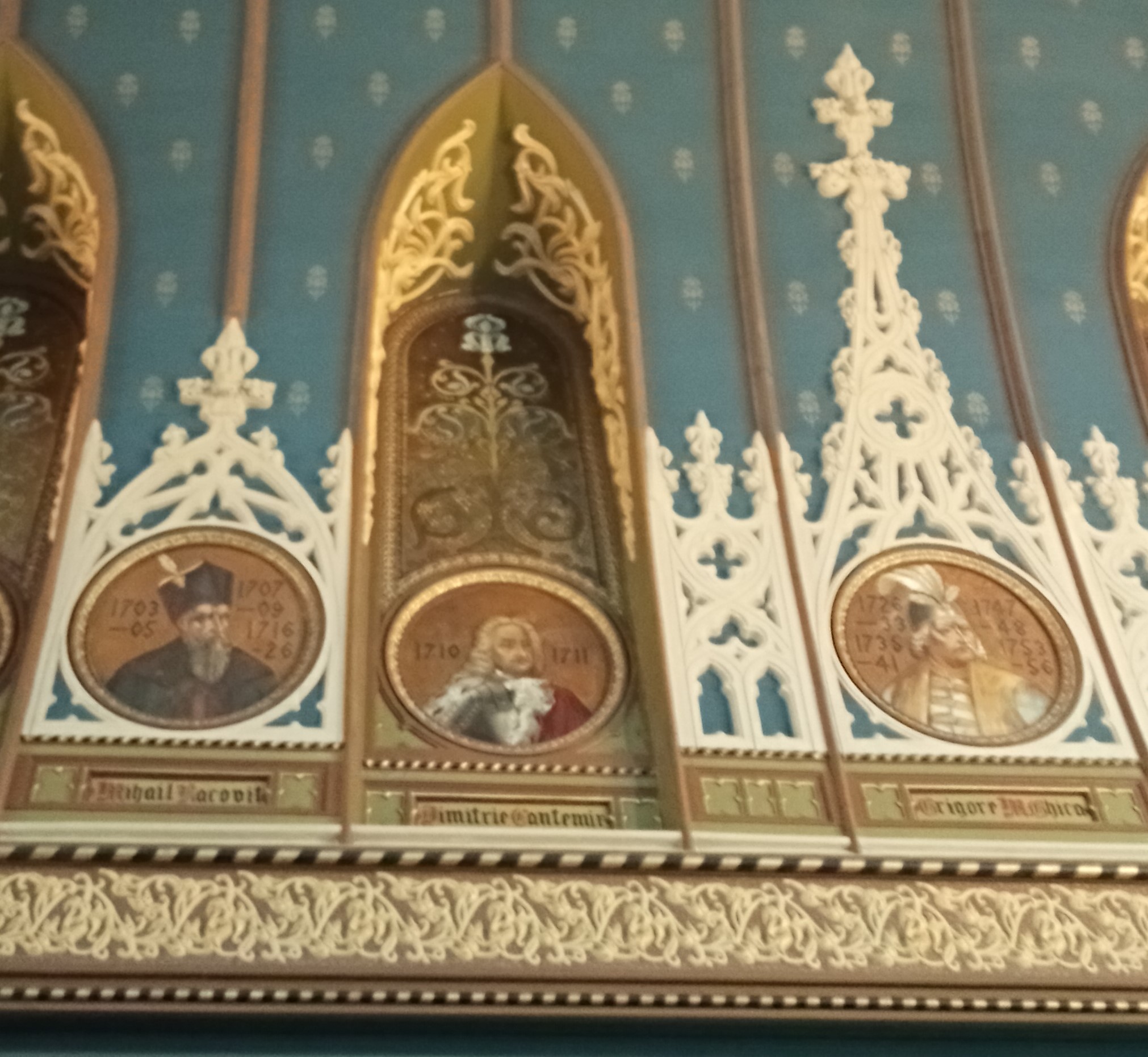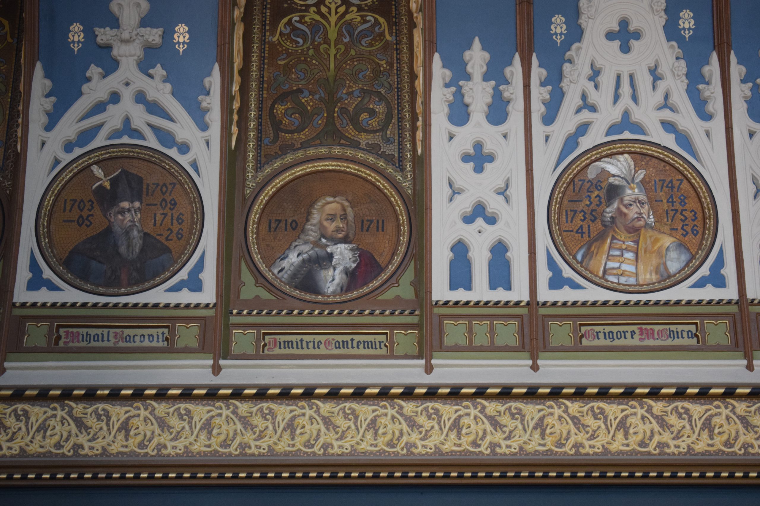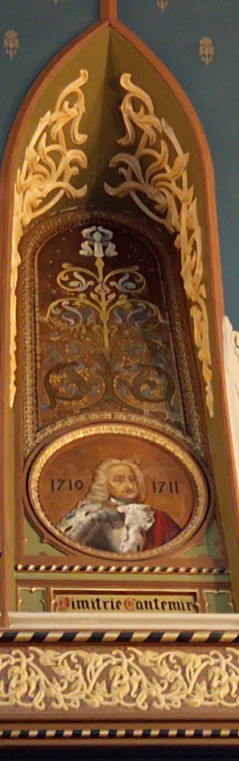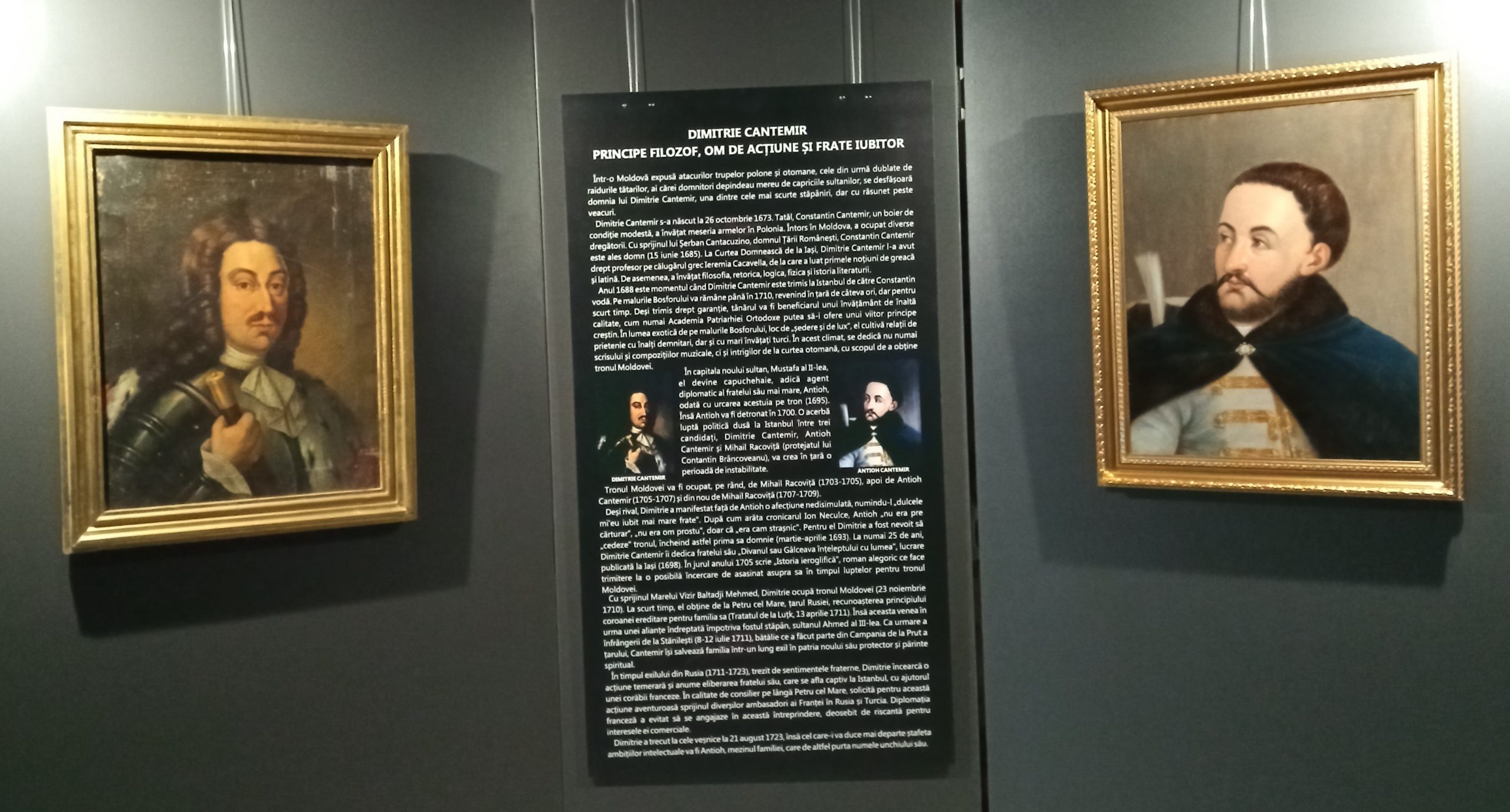 În continuarea parcursului, vizitatorul este invitat în Sala Voievozilor pentru a regăsi portretul lui Dimitrie Cantemir prezent în galeria de portrete în formă de medalion circular.