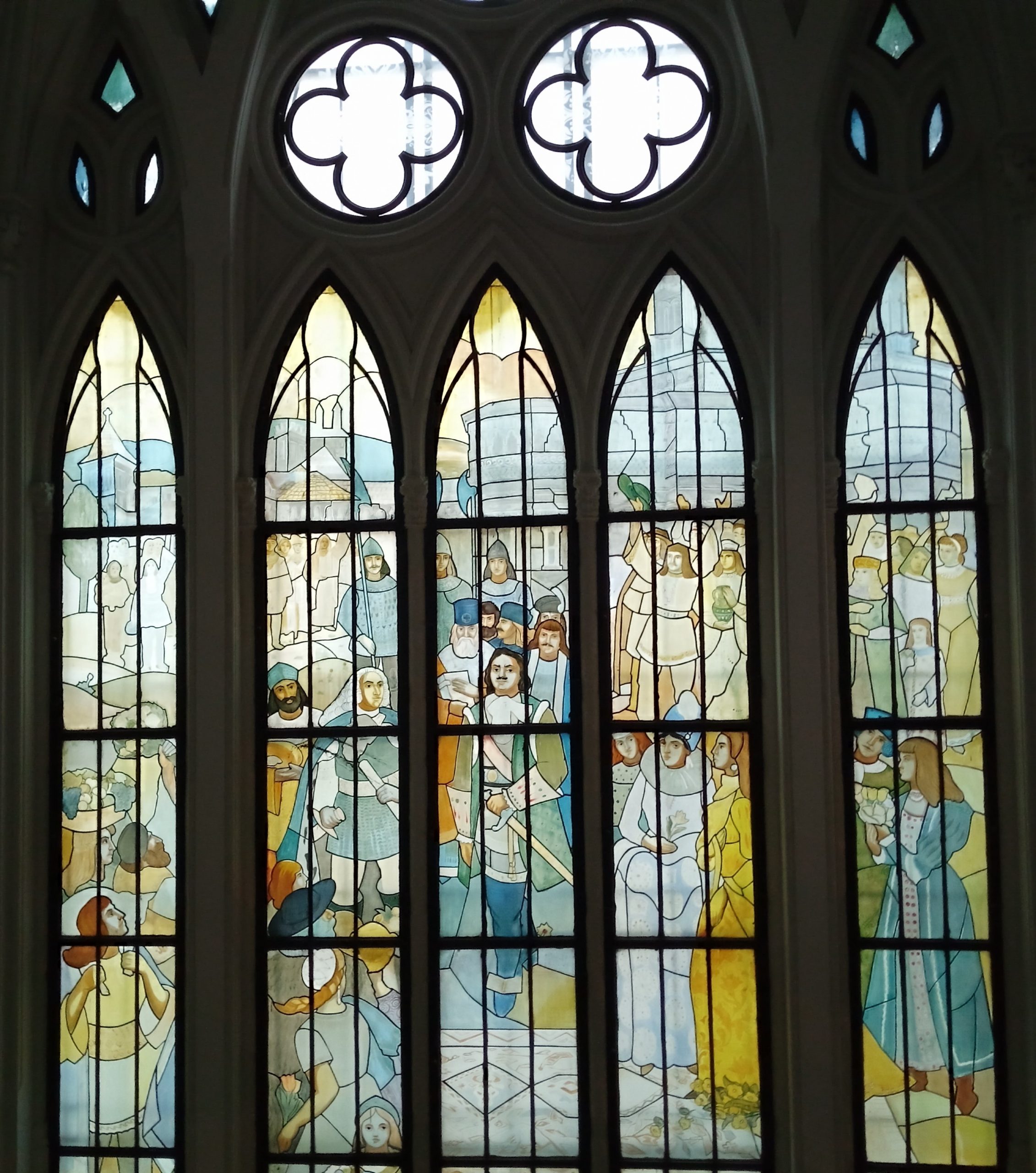 Așadar, în acest circuit, pe lângă lucrările amintite, este inclus vitraliul din zona scărilor din Palatul Culturii, cu cele trei ferestre ogivale care îl înfățișează pe Petru cel Mare și pe Dimitrie Cantemir în vizita acestora, 1711, la biserica „Trei Ierarhi” din târgul Iașilor.