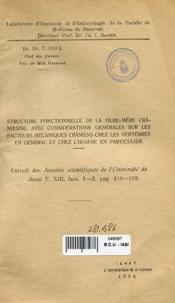 Stimați prieteni, astăzi, după cum bine știți, relatăm de la conferinţa „Grigore T. Popa – un model de existenţă”, acțiune dublată de o interesantă expoziţie documentară, manifestări organizate cu prilejul împlinirii, chiar în ziua de 18 iulie, a 75 de ani de la trecerea în eternitate a savantului Grigore T. Popa, năcut în anul 1892, la Șurănești, Vaslui, medic, anatomist, ce a descoperit și descris, în anul 1930, împreună cu cercetătoarea australiană Una Lucy Fielding sistemul vascular port hipotalamo-hipofizar, descoperire realizată în perioada în care lucrau împreună la Londra. Doamna Anca Hațapuc, șef birou Indexare/ BCU Iași, ne invită să descoperim lucrările savantului Grigore T. Popa, lucrări care sunt la un click distanță în Biblioteca digitală de pe site-ul BCU Iași; Anca Hațapuc își exprimă bucuria, pentru că acest eveniment a fost posibil chiar în ziua în care s-au împlinit 75 de ani de la trecerea în eternitate a savantului Grigore T. Popa, evident că este o bucurie care împlinește sufletul savantului.