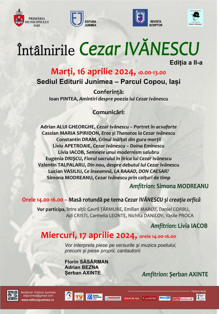 La Iași, în zilele de 16 și 17 aprilie a.c., s-a desfășurat manifestarea Întâlnirile Cezar IVĂNESCU, eveniment dedicat personalității și operei scriitorului bârlădean. Acțiunea culturală, aflată la ediția a II-a, a fost organizată de către reprezentanții Editurii Junimea din târgul Iașilor și s-a desfășurat în incinta sediului acesteia din Parcul Copou.