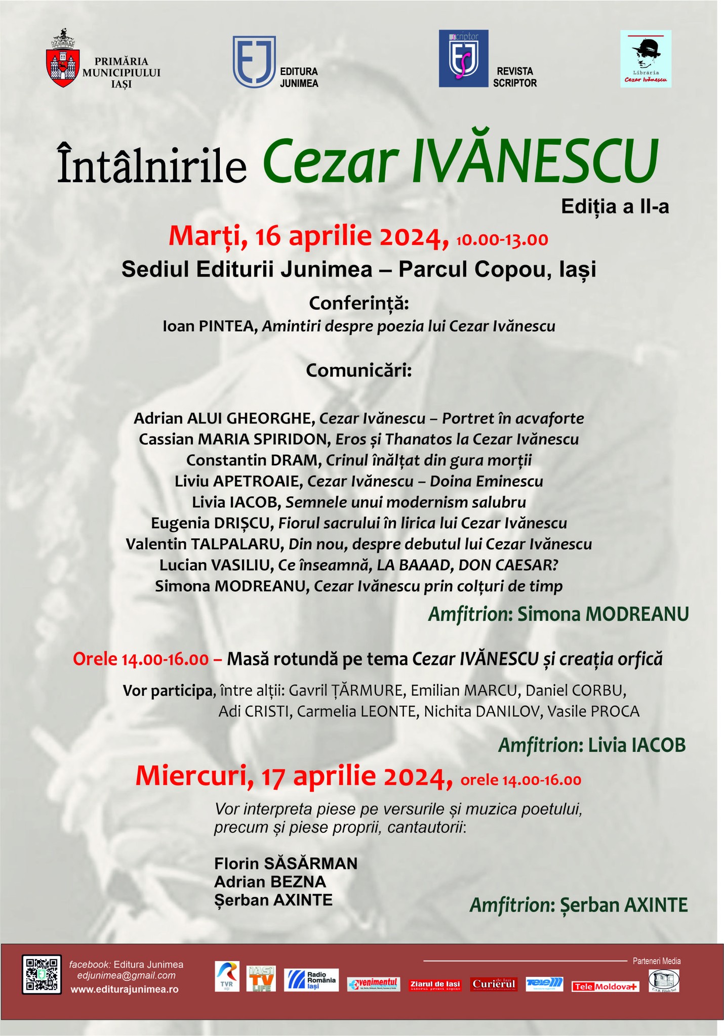 La Iași, în zilele de 16 și 17 aprilie a.c., s-a desfășurat manifestarea Întâlnirile Cezar IVĂNESCU, eveniment dedicat personalității și operei scriitorului bârlădean. Acțiunea culturală, aflată la ediția a II-a, a fost organizată de către reprezentanții Editurii Junimea din târgul Iașilor și s-a desfășurat în incinta sediului acesteia din Parcul Copou.