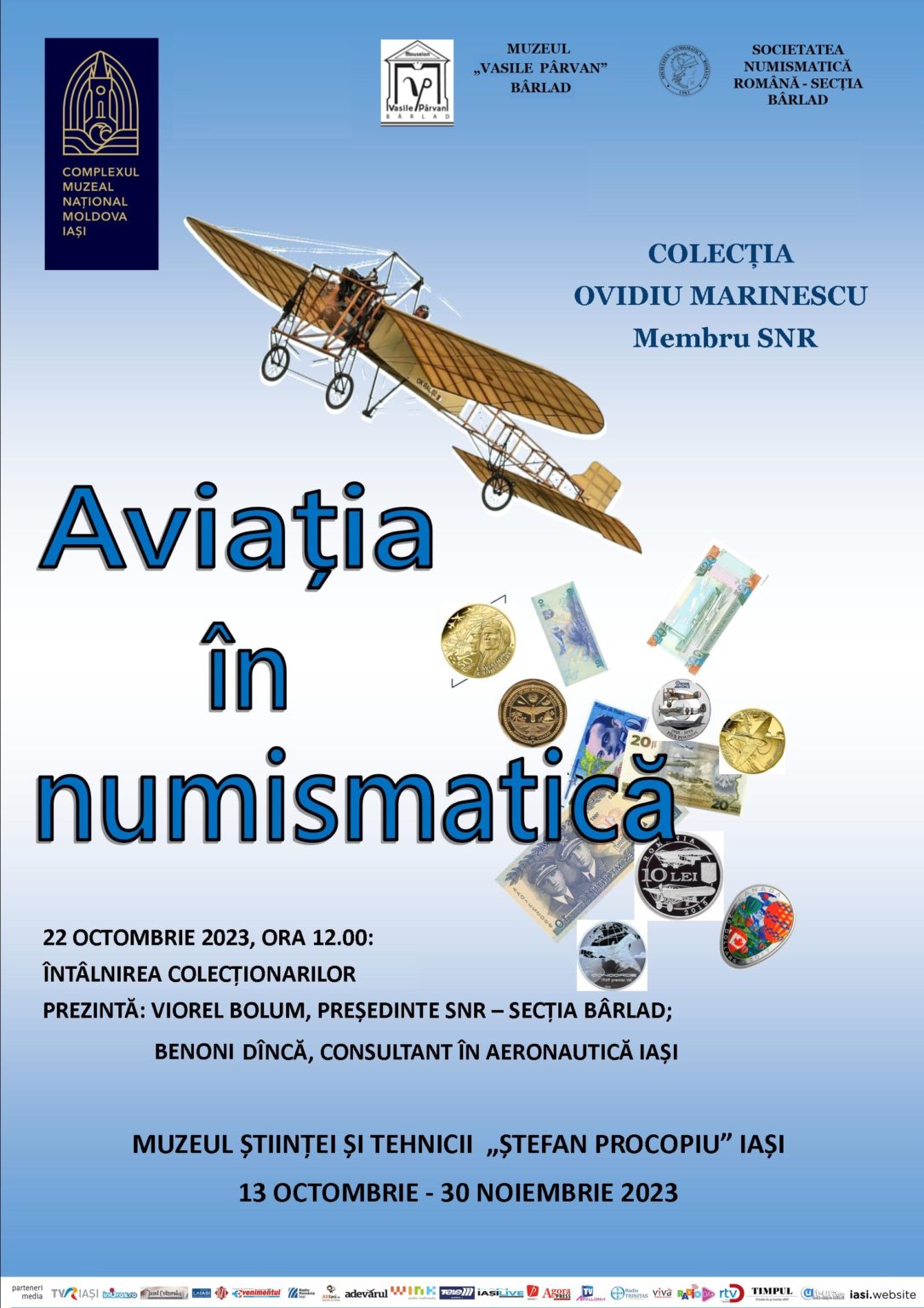La 22 octombrie 2023, începând cu ora 12, la Iași, în incinta Muzeului Științei și Tehnicii „Ștefan Procopiu” din cadrul Complexului Muzeal Național Moldova s-a desfășuart vernisajul expoziției „Aviația în numismatică”, eveniment, de înaltă ținută, organizat în parteneriat cu Muzeul „Vasile Pârvan” Bârlad și Societatea Numismatică Română – Secția Bârlad.