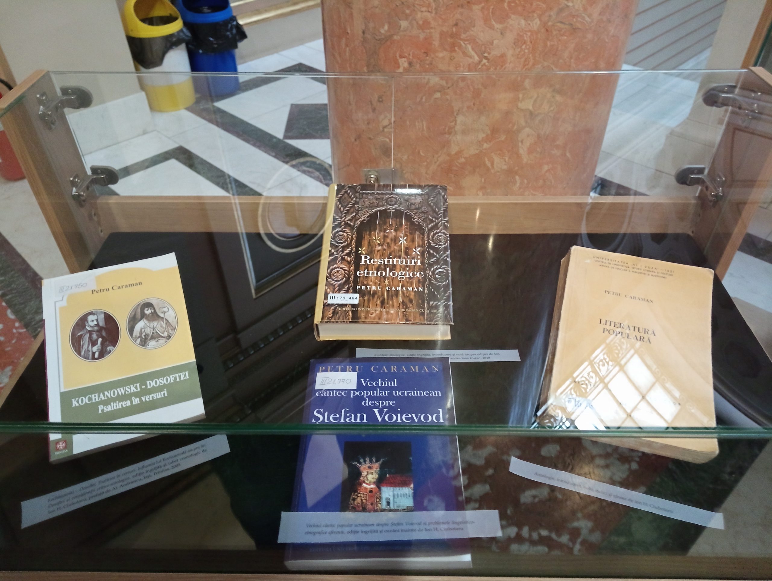 Expoziţia de carte deschisă în sediul central al Bibliotecii Centrale Universitare „Mihai Eminescu” Iaşi, etaj I, în perioada 11-22 decembrie 2023, cuprinde studii publicate de Petru Caraman până în anul 1947, teza de doctorat publicată în 1933, în Polonia, şi lucrările apărute postum îngrijite de către academicianul Ion H. Ciubotaru – legatarul său testamentar –, Silvia Ciubotaru, Iordan Datcu, Viorica Săvulescu, Ovidiu Bîrlea, Livia Cotorcea, Gheorghe Drăgan.