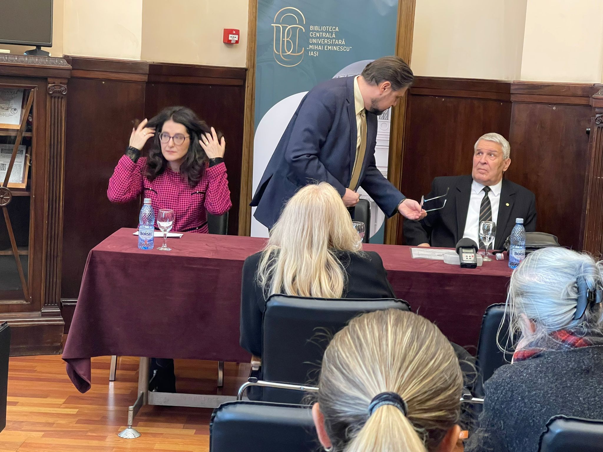 Imediat după conferințele (subiect al unei viitoare postări) susținute de către prof. univ., dr. în filologie, Ion H. Ciubotaru, membru de onoare al Academiei Române și etnolog Ioana Repciuc, am dialogat cu Anca Hațapuc, șef birou Indexare în cadrul BCU Iași, cea care ne povestește, concret și la obiect, despre excluderea, de către comuniști, din mediul academic, a două mari personalități – Gr. T. Popa și Petru Caraman – savanți de renume mondial, cărora reprezentanții BCU Iași le-au dedicat, în anul 2023, două evenimente de înaltă ținută academică.