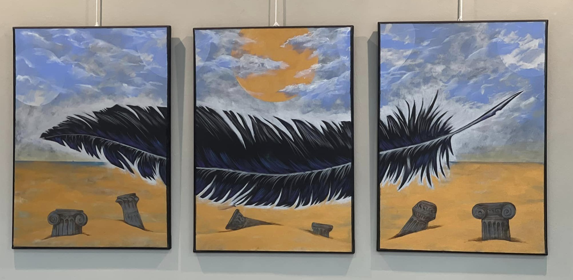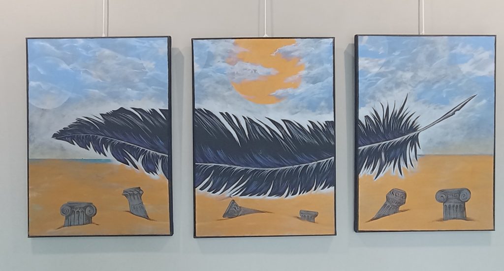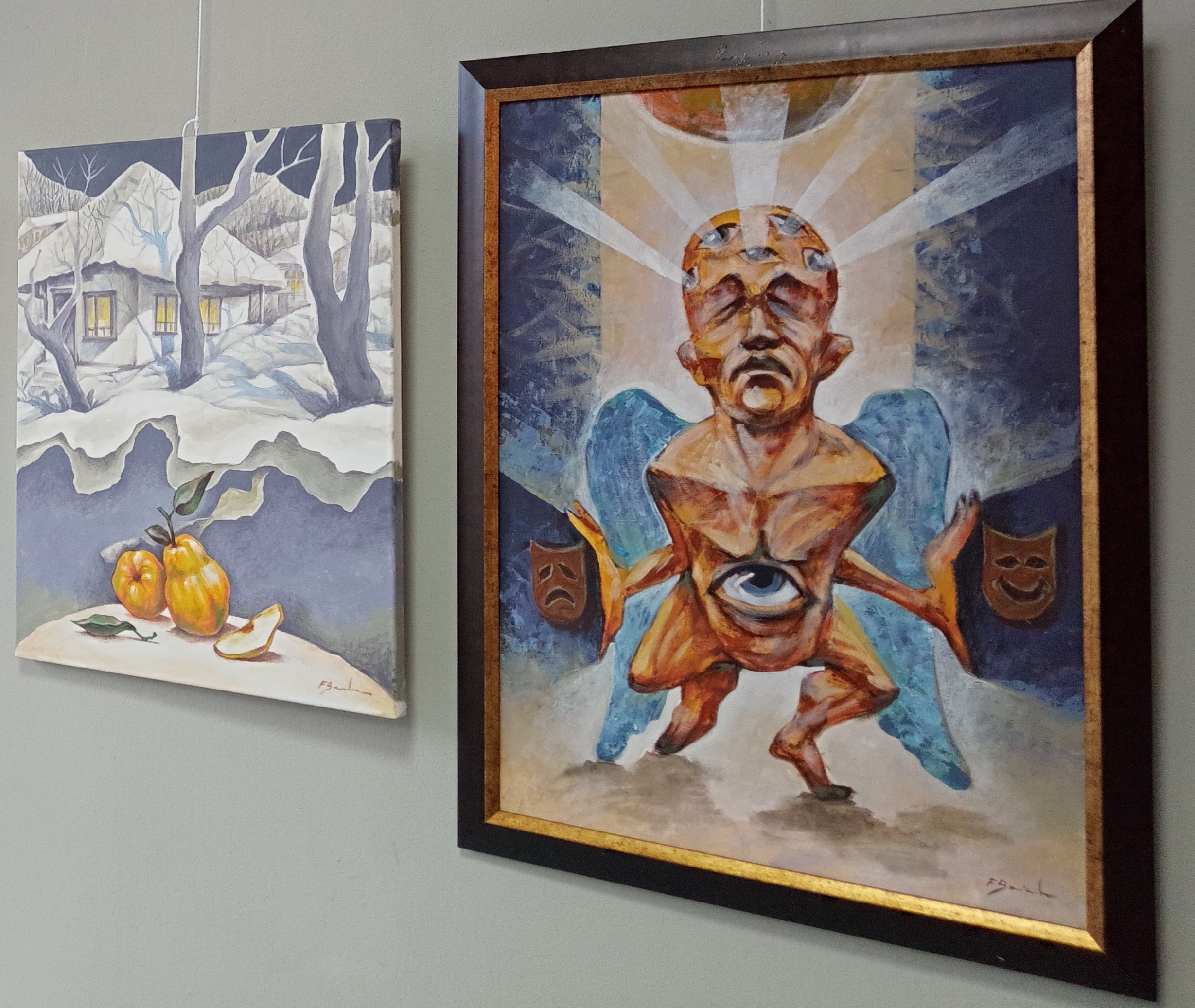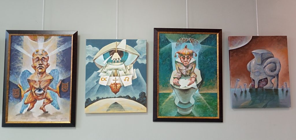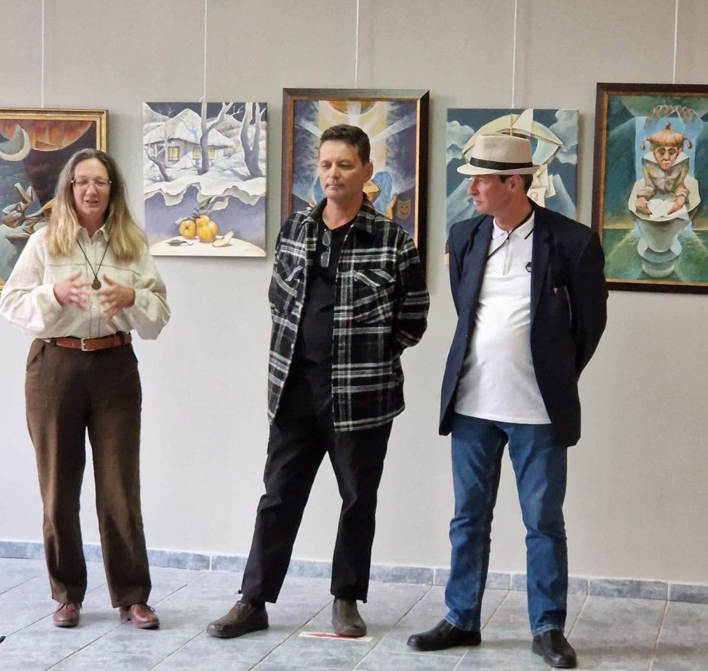 Pentru început, din deschiderea manifestării postăm vocea scriitorului Liviu Apetroaie, cel care-și exprimă o opinie pertinentă despre creațiile artistului Florin Buciuleac, subliniind simbolistica din lucrările expuse.