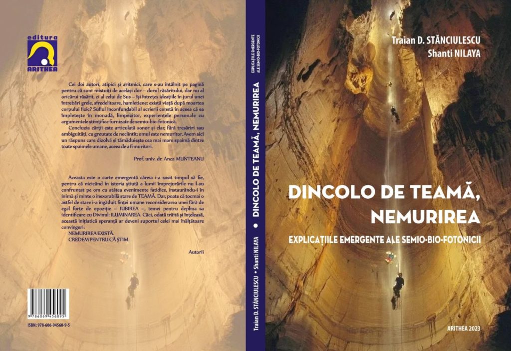 În următoarele minute, cu prlejul acestei întâlniri invităm la dialog pe scriitor Shanti Nilaya, cea care ne zugrăvește un tablou al cărții Dincolo de teamă, nemurirea. Explicațiile emergente ale semio-bio-fotonicii, volum care a văzut lumina tiparului, anul acesta, la Editura ARITHEA din Iași.