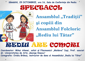 Sâmbătă, 29 octombrie, ora 16, va invităm la spectacolul „REDIU ARE COMORI”.