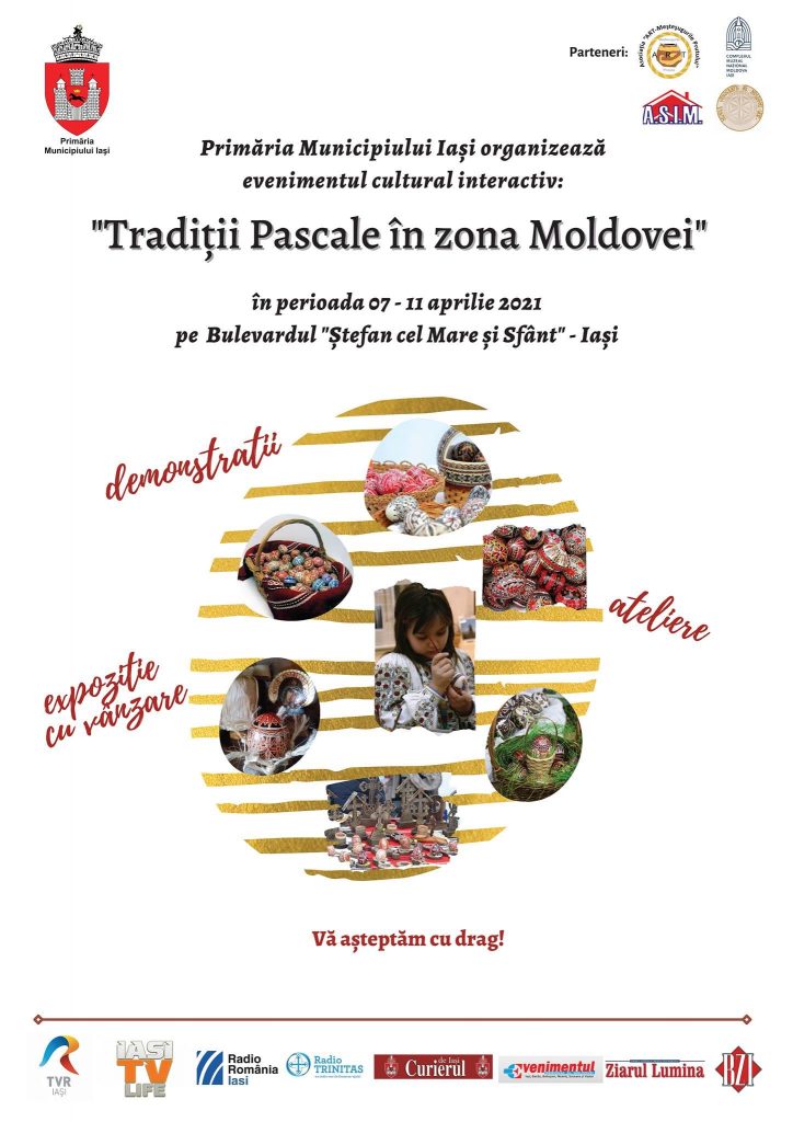 “Tradiţii Pascale în zona Moldovei”, eveniment cultural interactiv organizat de Primăria Iaşi şi Asociaţia “Art-Mesteşugurile Prutului”, 7 – 11 aprilie 2021, pe Pietonalul Ştefan cel Mare şi Sfând din municipiul Iaşi.