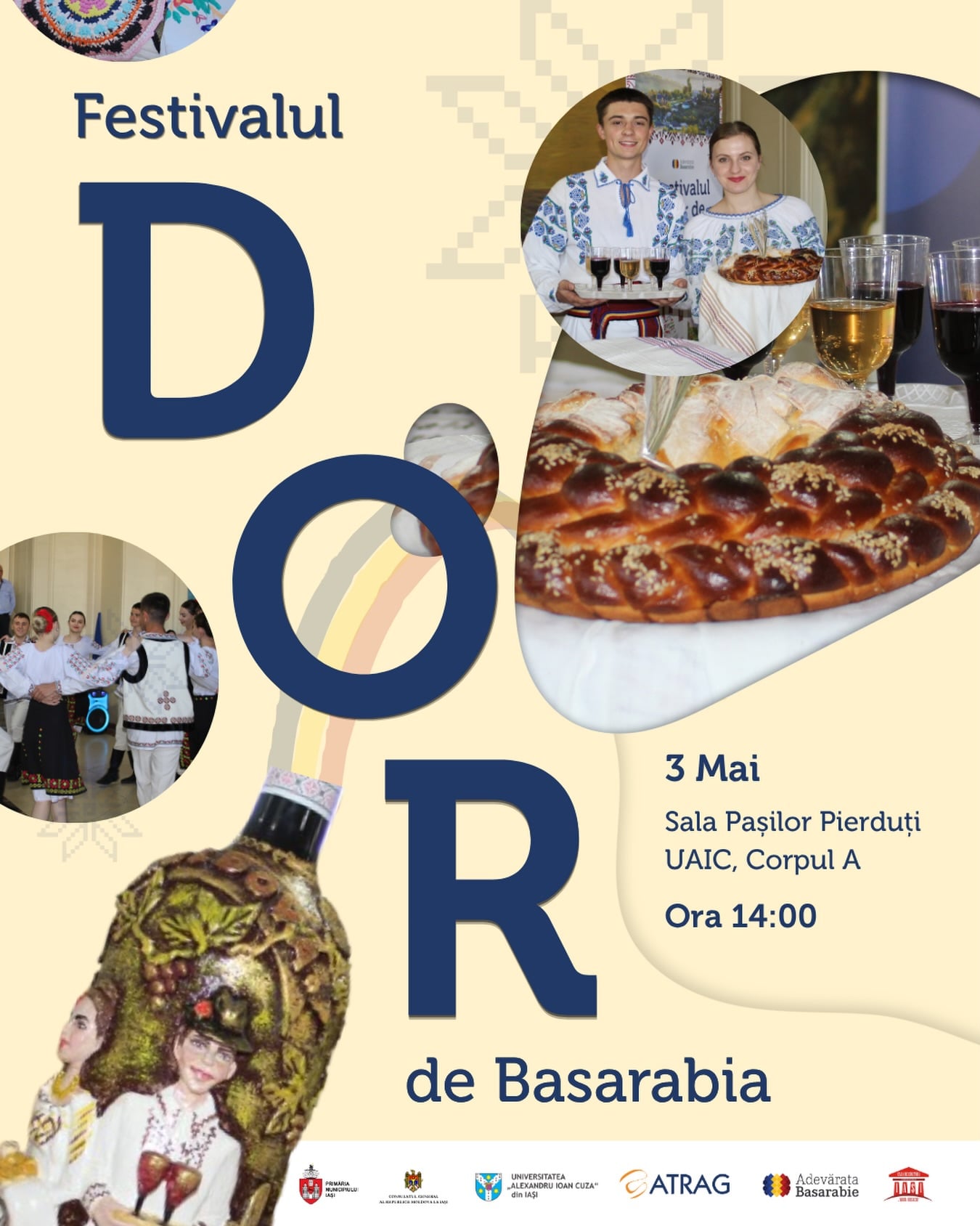Te așteptăm într-o atmosferă folclorică, plină de emoții şi dor. Vei descoperi muzică, dansuri și bucate tradiționale, toate din inima Moldovei. Acestea spun povești, afirmă o identitate şi împrăștie bucurie.