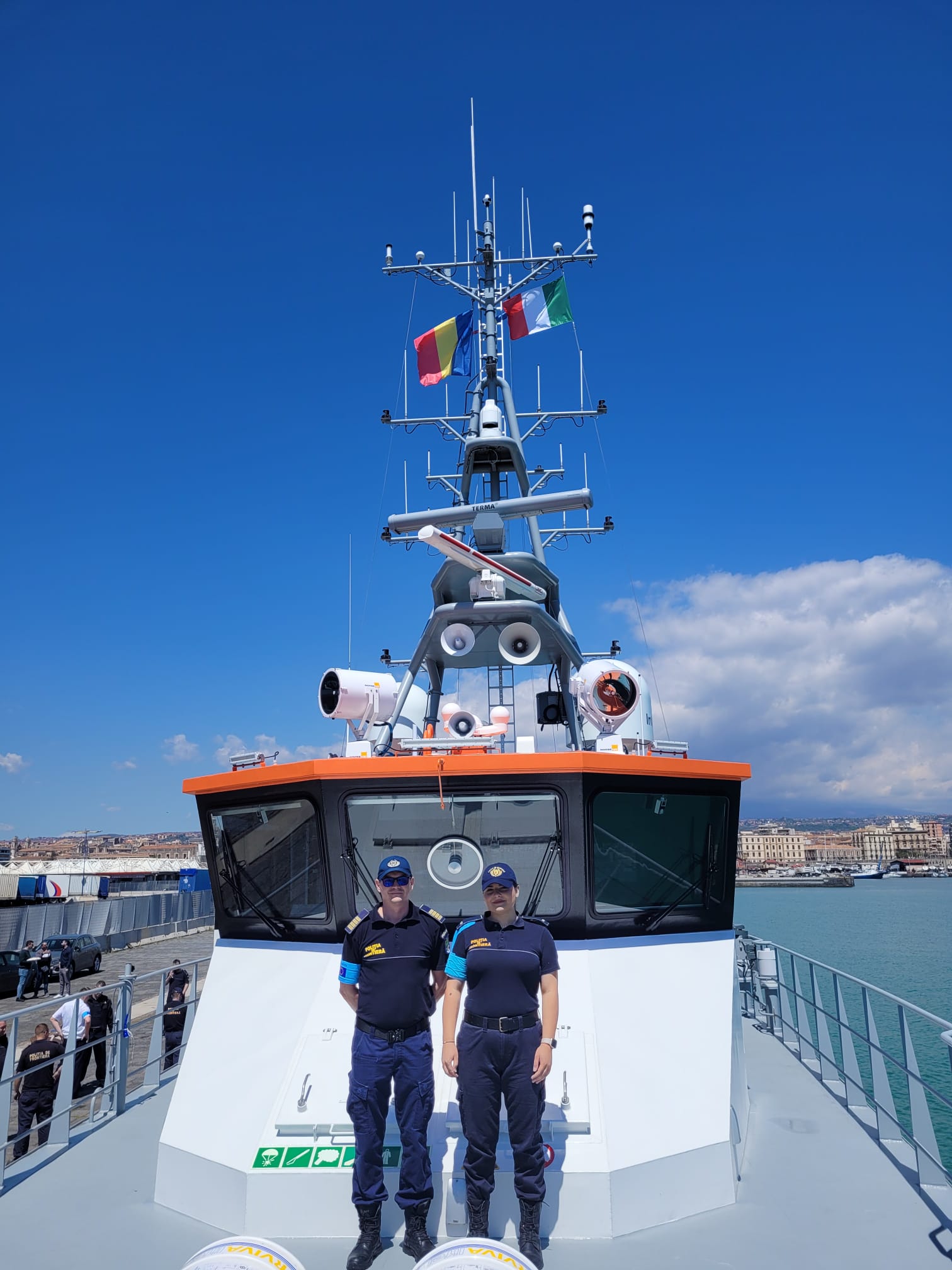 Corespondentul Radio România în Italia, Elena Postelnicu, a primit permisiunea să urce la bordul navei înainte ca aceasta să iasă din nou în larg și a discutat cu comisarul de poliție, Nicolae Stignei, comandantul navei, dar și cu membri ai echipajului.