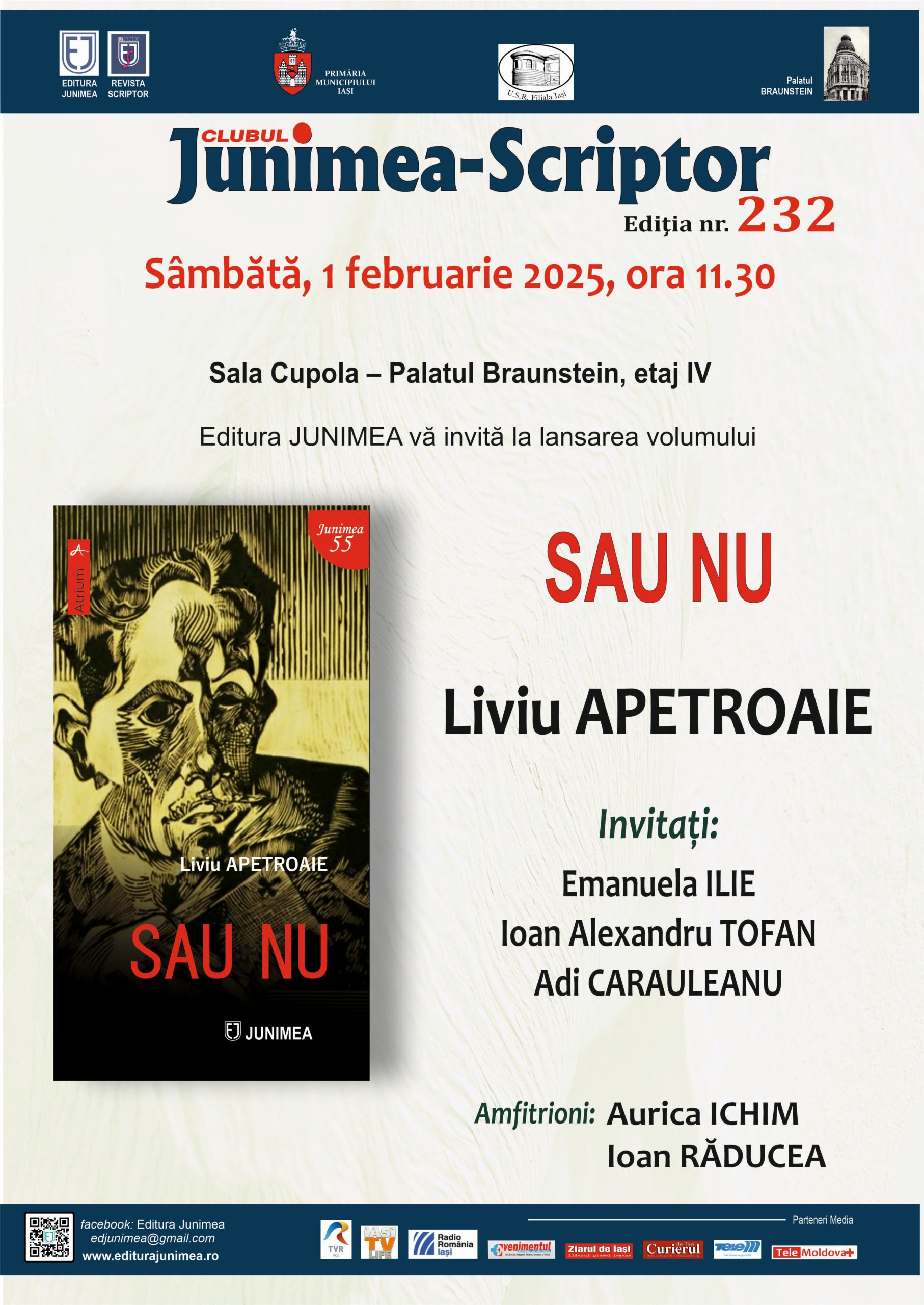 O nouă carte de poeme, sub semnătura lui Liviu Apetroaie, a apărut în colecția Atrium a Editurii Junimea din Iași. Volumul se numește ” Sau Nu” și va fi lansat pe data de 1 februarie, începând cu ora 11.30 în Sala Cupola a Palatului Braunștein din Iași.