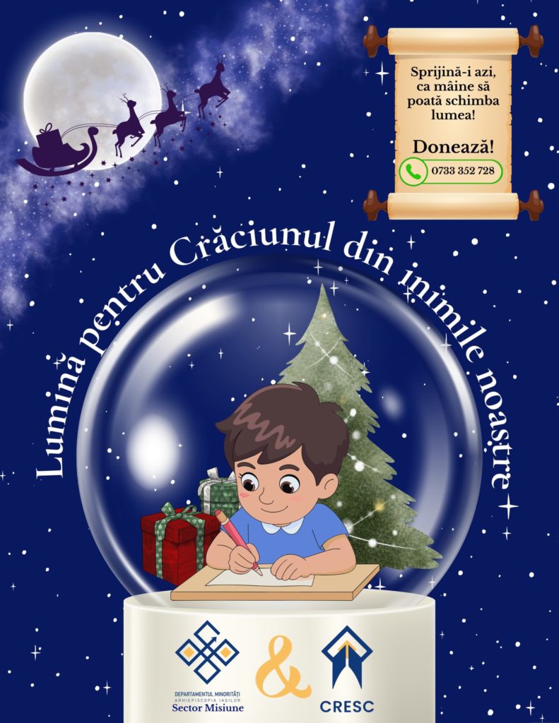 Asociația „Cresc” lansează campania „Lumina pentru Crăciunul din inimile noastre”, prin care își propune să ofere 10 burse educaționale, în valoare de 400 de lei fiecare, copiilor din medii defavorizate – tineri care luptă zi de zi să își continue studiile și să își construiască un viitor.