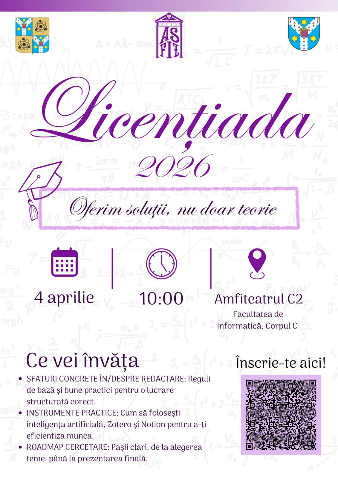 Tinerii de la Asociația Studenților Fizicieni – Universitatea „Alexandru Ioan Cuza” Iași (ASFIZ-UAIC) pregătesc cea de-a III-a ediție a evenimentului „LICENȚIADA”! Acesta se va desfășura în a patra zi de aprilie în Amfiteatrul C2, Facultatea de Informatică UAIC Iași.