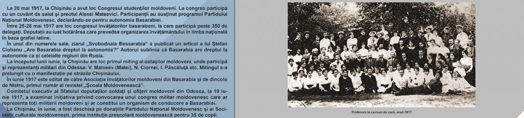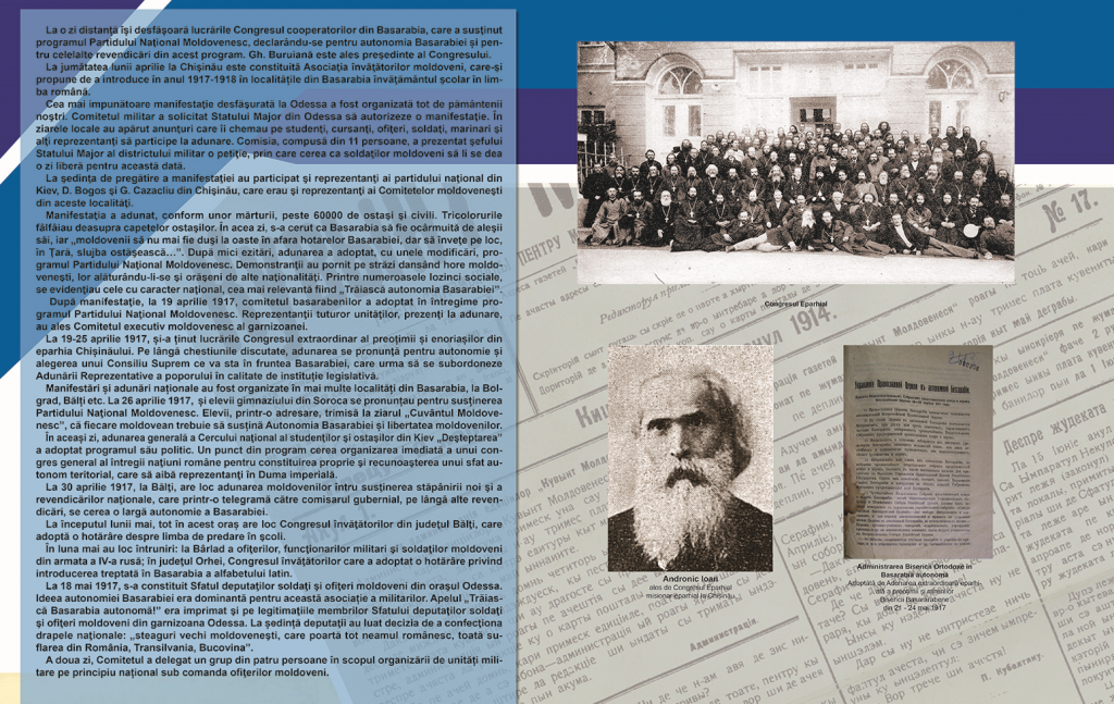 La sfârșitul lunii aprilie, în urma unei colaborări între Institutul Cultural Român „Mihai Eminescu” la Chișinău și Centrul de Cultură și Istorie Militară al Ministerului Apărării al Republicii Moldova, a fost deschisă expoziția cu titlul „Mișcarea de Eliberare Națională din Basarabia. 1917 – 1918”.