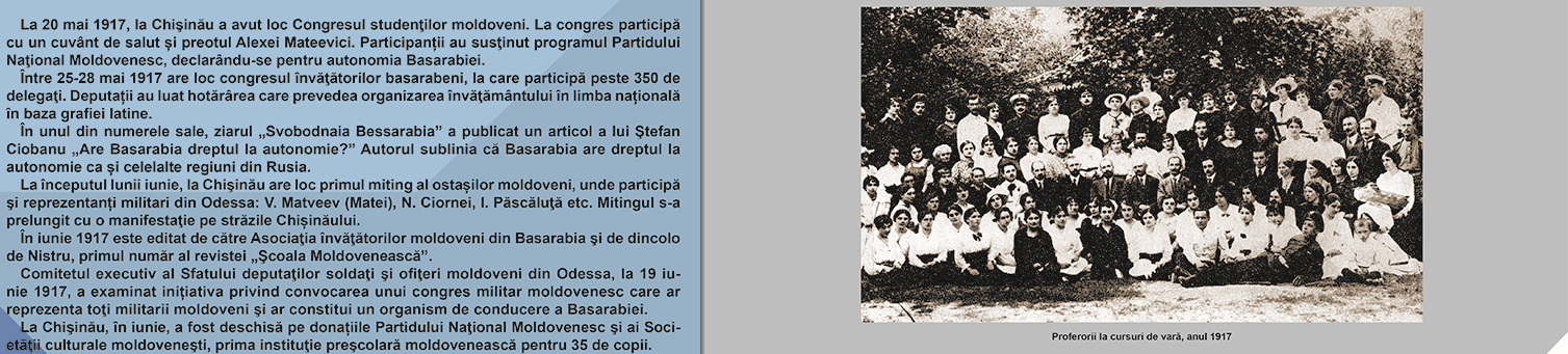 La sfârșitul lunii aprilie, în urma unei colaborări între Institutul Cultural Român „Mihai Eminescu” la Chișinău și Centrul de Cultură și Istorie Militară al Ministerului Apărării al Republicii Moldova, a fost deschisă expoziția cu titlul „Mișcarea de Eliberare Națională din Basarabia. 1917 – 1918”.