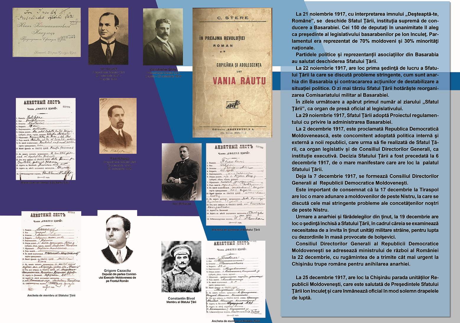 Aceasta cuprinde o serie de documente, mărturii și fotografii inedite, extrase din arhivele existente în Republica Moldova, România și Federația Rusă, referitoare la evenimentele desfășurate în Basarabia, în perioada martie 1917- 27 martie 1918.