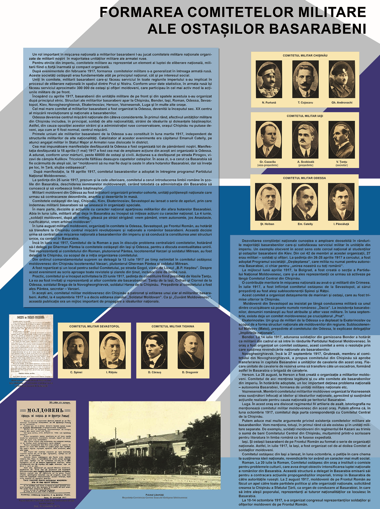 Într-un interviu acordat de șeful Muzeului Militar de la Chișinău, Alexandru Chirilenco,  a precizat că expoziția se axează pe rolul ostașilor, militarilor basarabeni în demersul Unirii Basarabiei cu România, în martie 1918. Un dialog realizat de Horia Daraban.