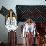 Concret, pășim în prima sală a muzeului – camera de locuit – în care sunt expuse mai multe costume populare, femeiești și bărbătești.