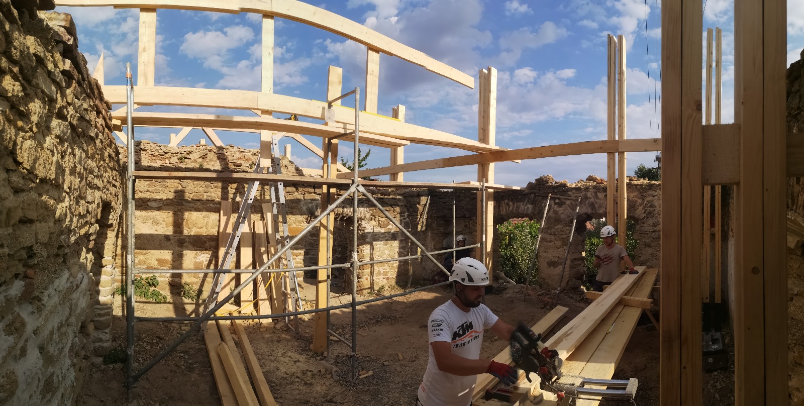 Din nefericire, cred că de mai bine de 60 de ani această clădire este în ruină și timpul o degradează tot mai mult. Și a fost unul din motivele pentru care am vrut să ne implicăm în acest proiect. Un alt motiv a fost și o cerere de la domnului președinte al Direcției pentru Cultură din Iași, care a solicitat asociației noastre să luăm niște măsuri. Acolo a fost foarte interesant pentru că ne-am dat seama că singura metodă de a salva această clădire este să-i facem un acoperiș de protecție. Evident, un acoperiș temporar și care cumva reia silueta acoperișurilor din timpul respectiv.