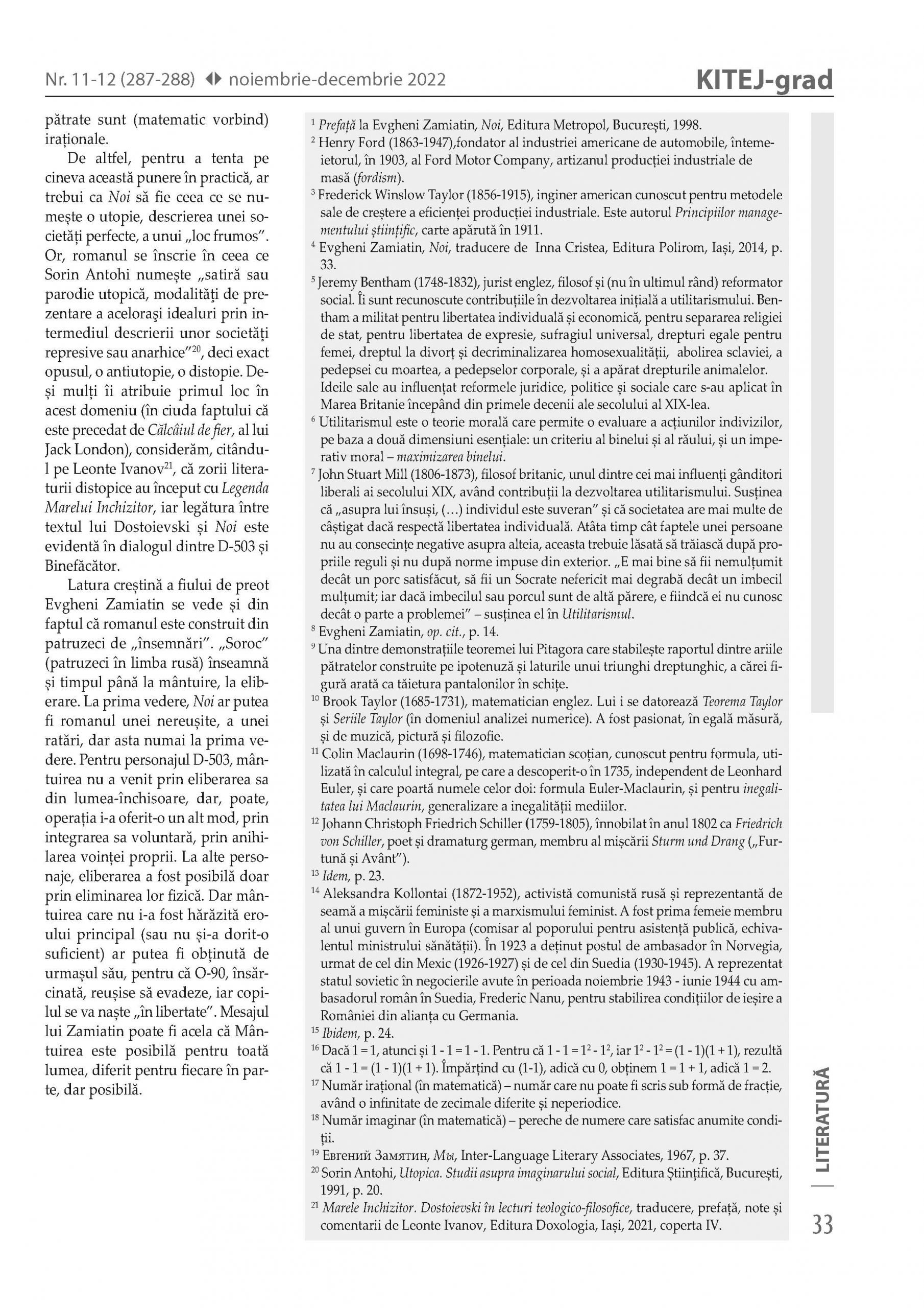 Atât fiul, Alexandru Lunguleac, invitat într-o ediție trecută a emisiunii noastre, cât și tatăl, Leonard Lunguleac, de-a lungul anilor, au semnat în paginile revistei „Kitej-Grad” texte foarte interesante care surprind atât tradițiile etnicilor staroveri din România, cât și subiecte din cultura rusă. De exemplu, în Numerele 11-12 (287-288), noiembrie-decembrie 2022, invitatul ediției semnează studiul Prin Matematică – Utopie. În Noi (roman scris de către Evgheni Zamiatin).