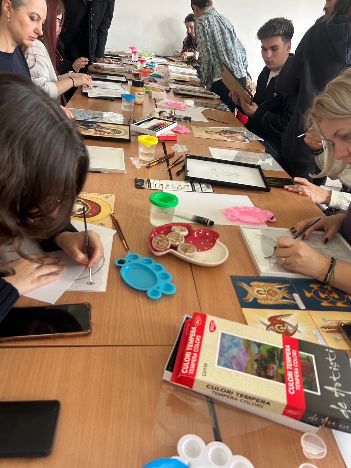 Ana Maria Hanganu: Da, cumva a fost în paralel cu cea de artist plastic, deoarece am început să realizez prima dată ateliere de pictură pentru copilași în biserici, mai exact icoane pe sticlă.Și am continuat pe partea asta, mă bucur că am ajuns aici și mă bucur că pot fi aproape de acest domeniu, să văd și reacțiile elevilor, să văd cum este totul.