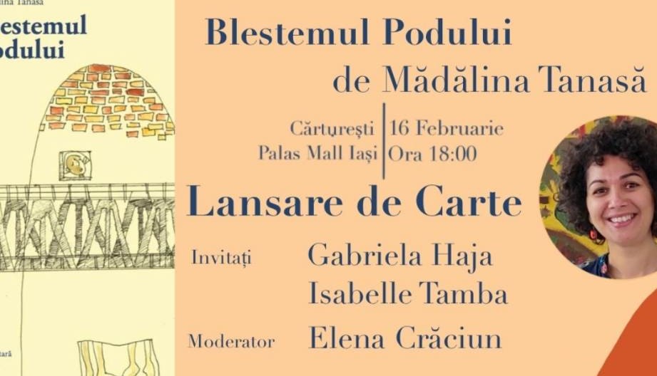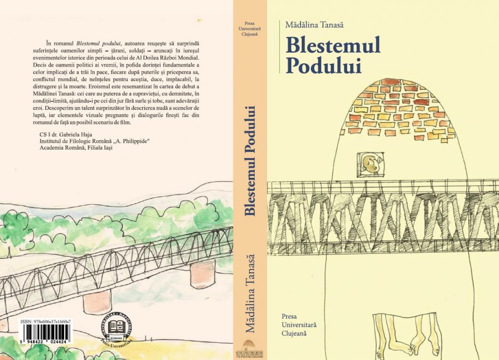 Este vorba despre cartea Blestemul Podului, roman care a văzut lumina tiparului la Editura Presa Universitară Clujeană, având ca motto cuvintele: „Dumnezeul meu, Dumnezeul meu, pentru ce m-ai părăsit?” și veți asculta pe parcursul dialogului explicațiile aferente. Până atunci, invitata noastră ne amintește câteva repere biografice, așezându-ne în zona de origine, vorbindu-ne, secvențial, despre școlile absolvite, am spus secvențial, pentru că e un om modest; Mădălina Tanasă ne oferă și câteva detalii despre titlul romanului și cred că aproape fiecare dintre dumneavoastră cunoaște acest pod; mai mult, pe coperțile cărții e o frumoasă ilustrație a tânărului artist Emanuel Chiriac pe care, nu întâmplător, l-am cunoscut în clipele verii de anul trecut.
