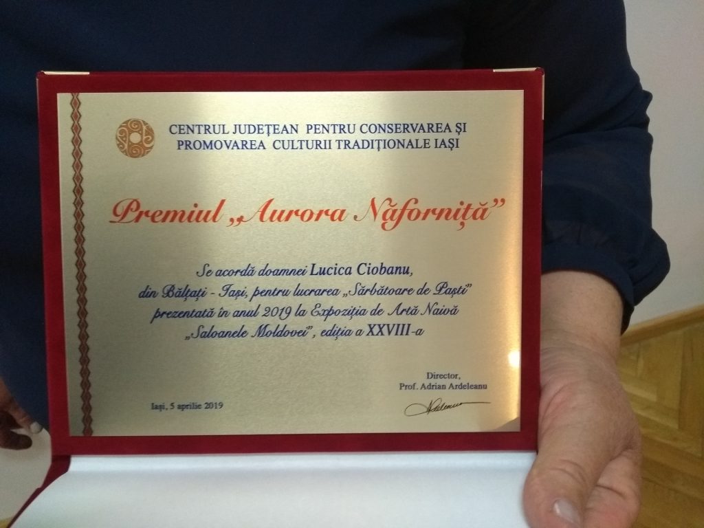 Unul dintre premii este oferit de către reprezentanții centrului, în memoria celei care a fost Aurora Năforniță, un nume în ceea ce privește arta naivă din Moldova, premiu care, la ediția de anul acesta, a revenit pictoriței naive Lucica Ciobanu din Bălțați, Iași, pentru lucrarea – De sărbători.